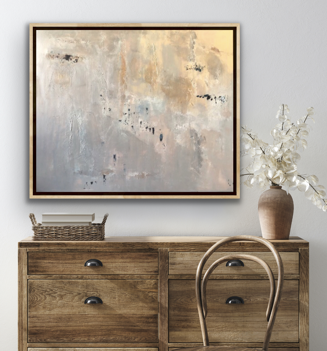 With a warm cozy rug and this natural and earthy painting around, your zone will surely look classy.