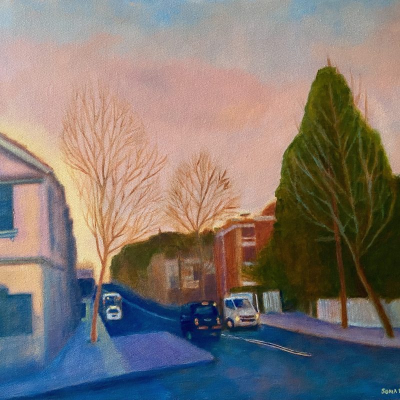 Acrylic on stretched canvas, ready to hang.