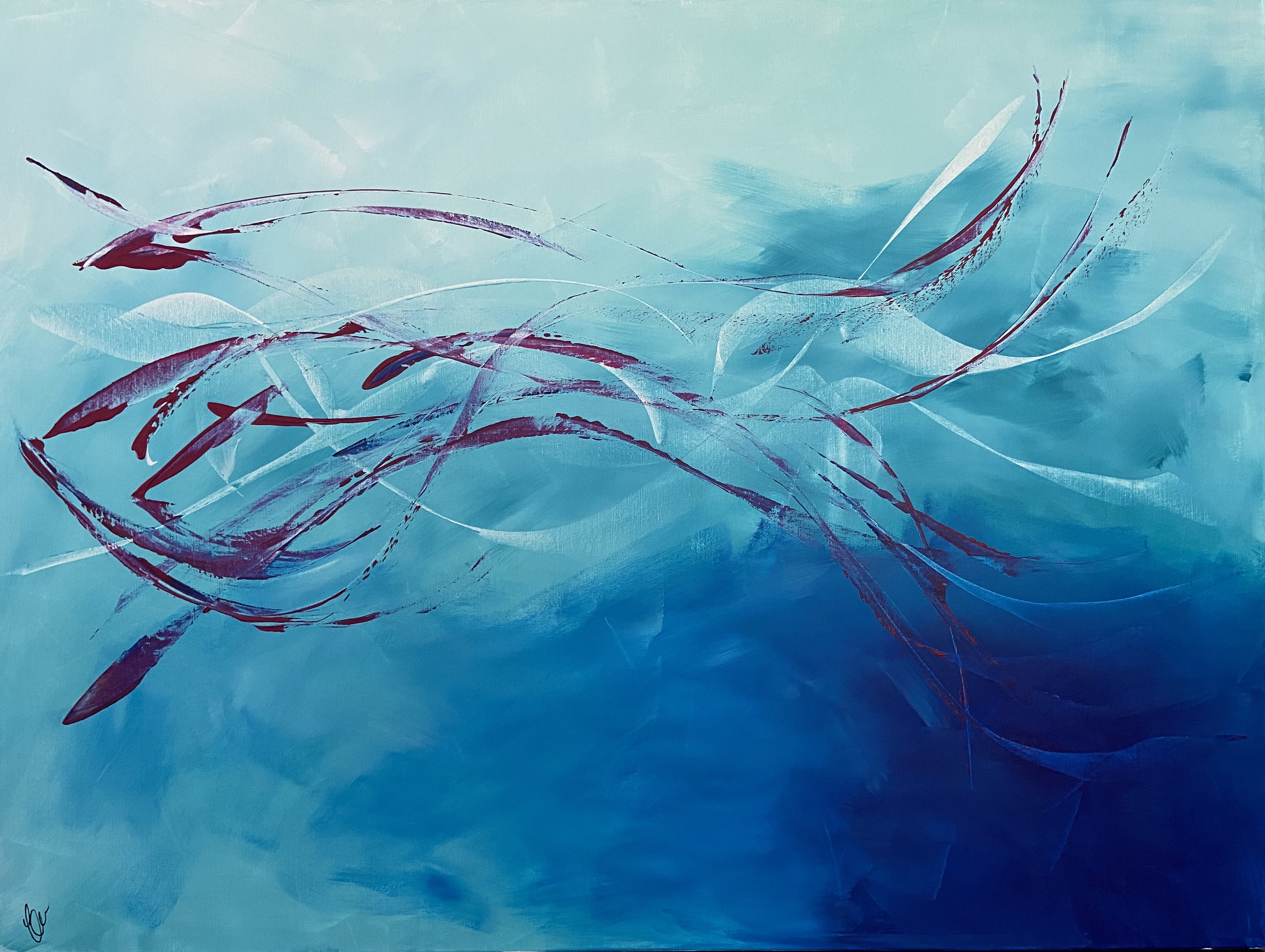 Ethereal is a beautiful delicate free flowing abstract painting that gives a sense of absolute peace and tranquility. Acrylic on canvas. Ready to hang. Frames in images not included.