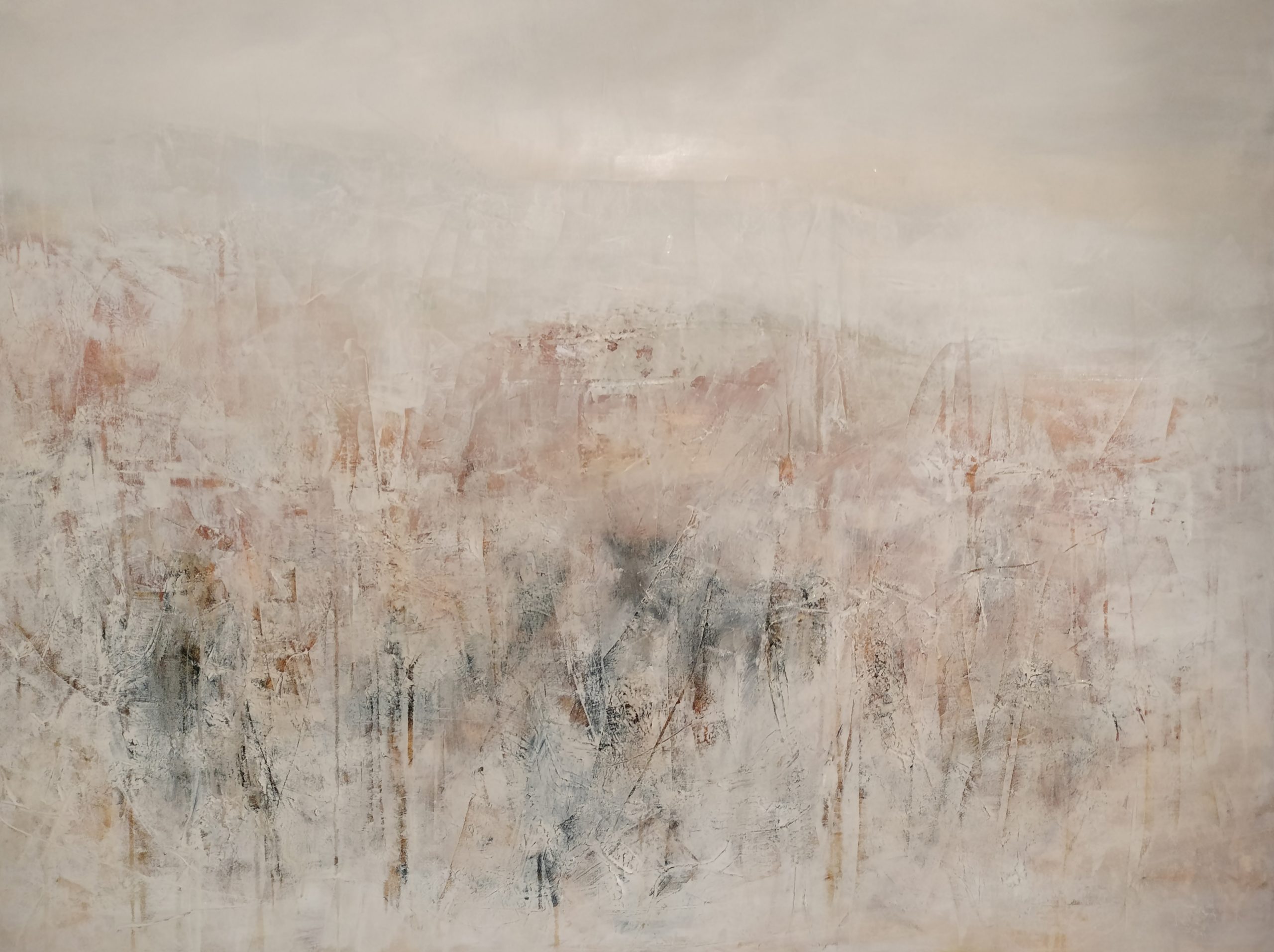 “Ethereal” is a semi-abstract landscape painting that transports viewers into a realm of serenity and mystery. The landscape is bathed in a soft, ethereal light. The hillside horizon is softened by a hazy mist, evoking a sense of depth and infinite tranquility. “Ethereal” invites viewers to immerse themselves in its peaceful atmosphere and contemplate the beauty of nature’s quiet elegance.