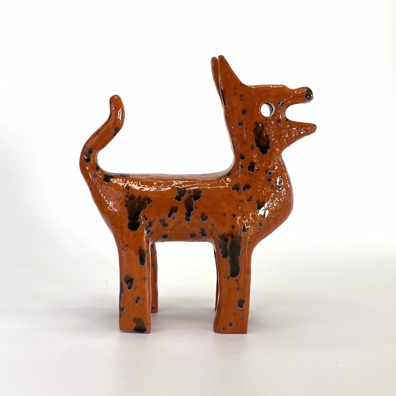 Inspired by Etruscan horse shapes, this sculpture features an unusual multi-toned glaze.