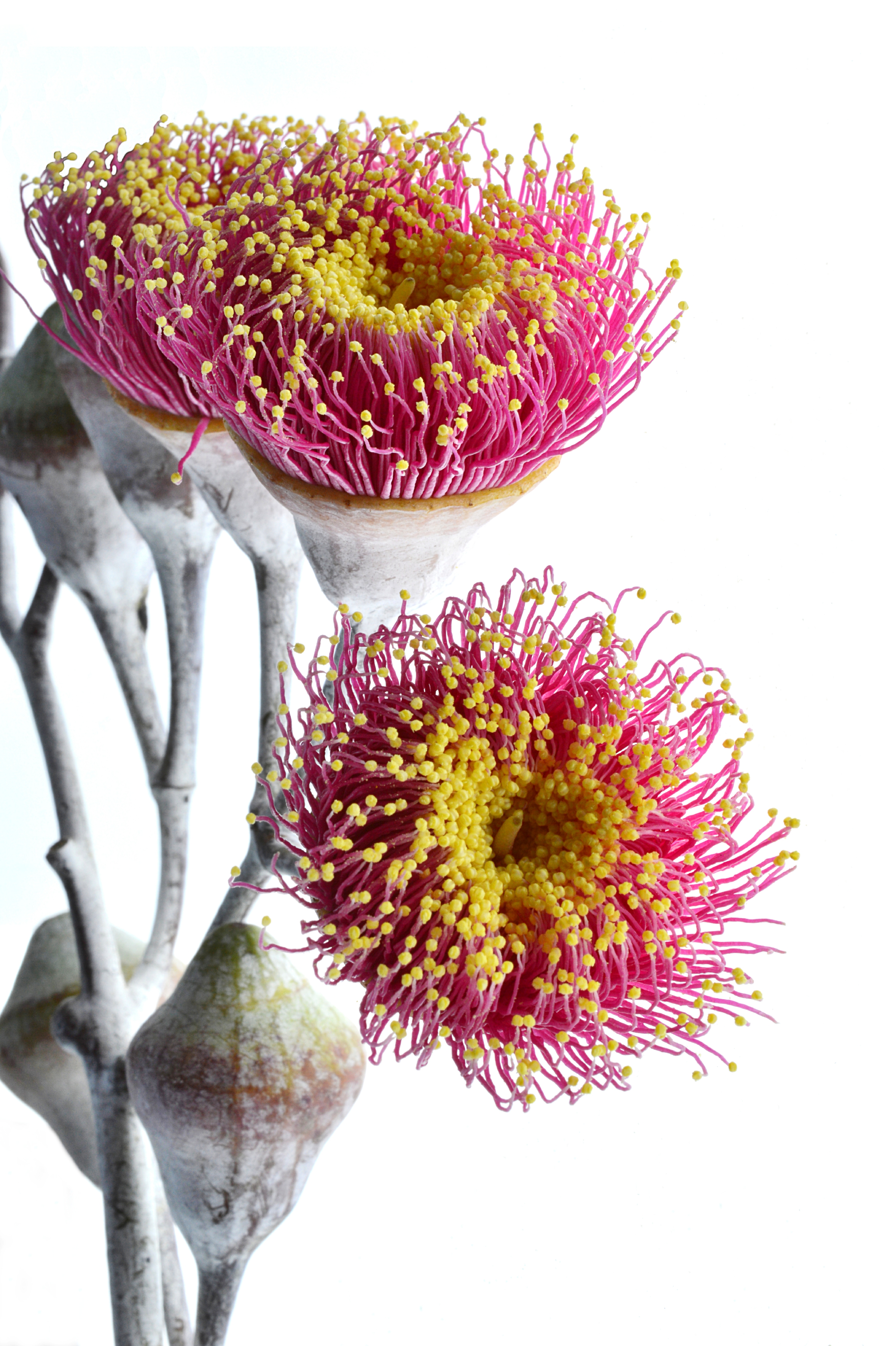Stunning pink and yellow against the silvery white of the branches, make these Australian natives a favourite of mine. Eucalyptus Blossoms on White showcases the colour and uniqueness of our native flora.