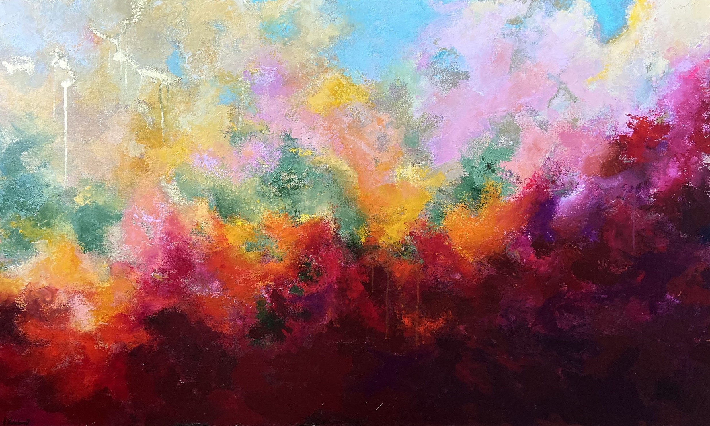 Green in this painting carries the vibration of growth, new beginnings, hope, and peace.