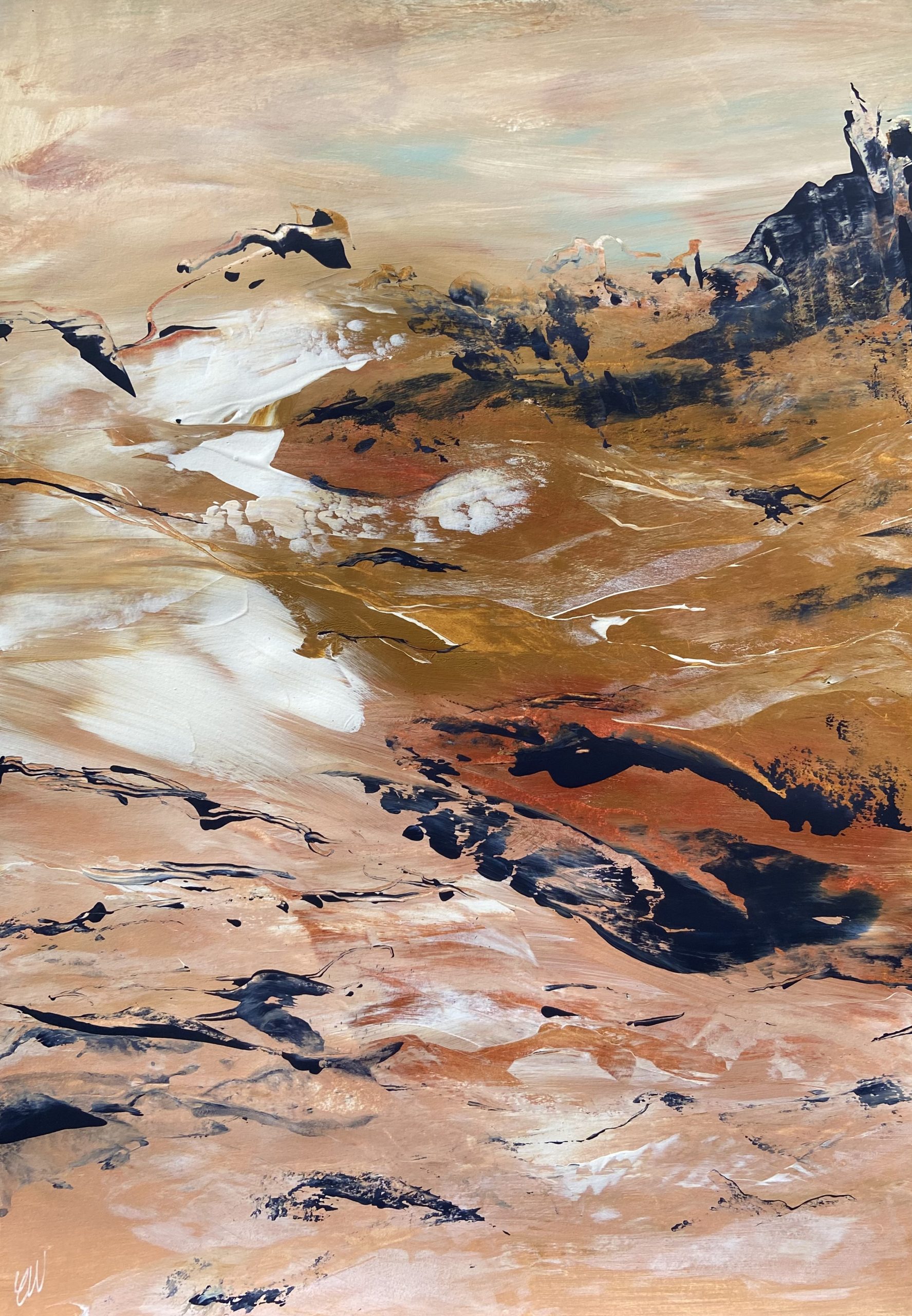 A beautiful abstract landscape painting. 59.4 x 42 cm (A2 size). Acrylic on paper. Frame not included. Requires framing.