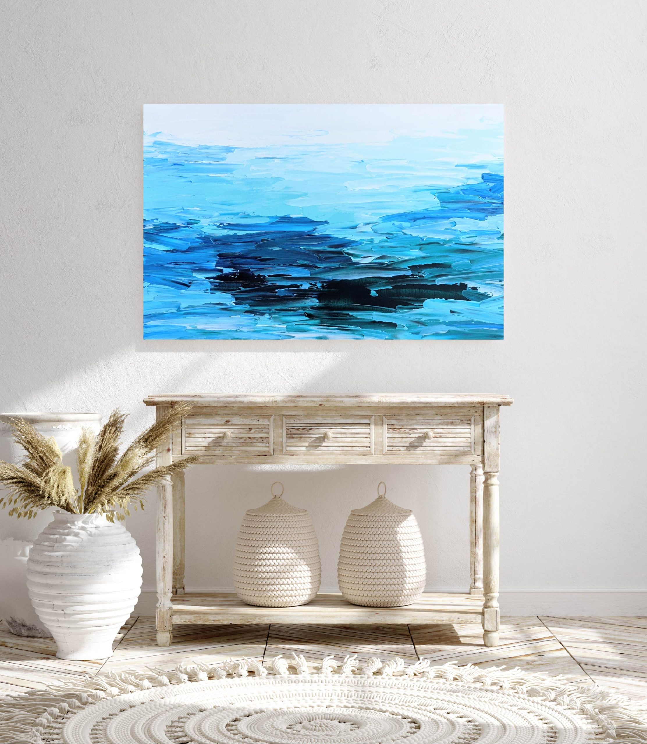 I’ve given myself the freedom to play and experiment in the studio and this has been an intensely satisfying excercise and a fresh new direction for my art. The interesting thing is that I am using the same tools, paint and colours with the results being so different yet still very familiar to my original style. These artworks are created with thick layers of paint and a palette knife.