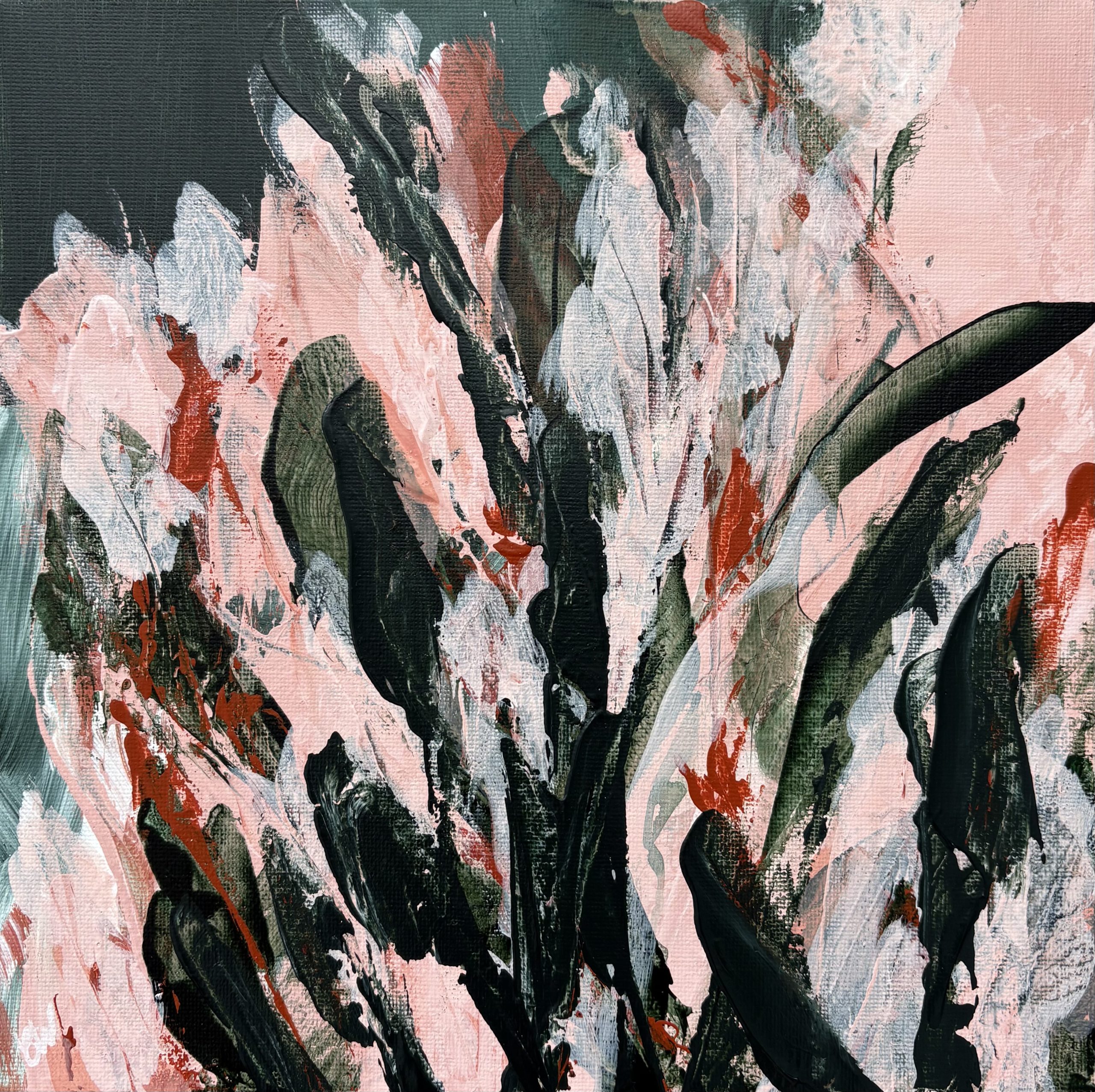 This piece is a beautiful abstract botanical. Acrylic on canvas, ready to hang. Frame not included.