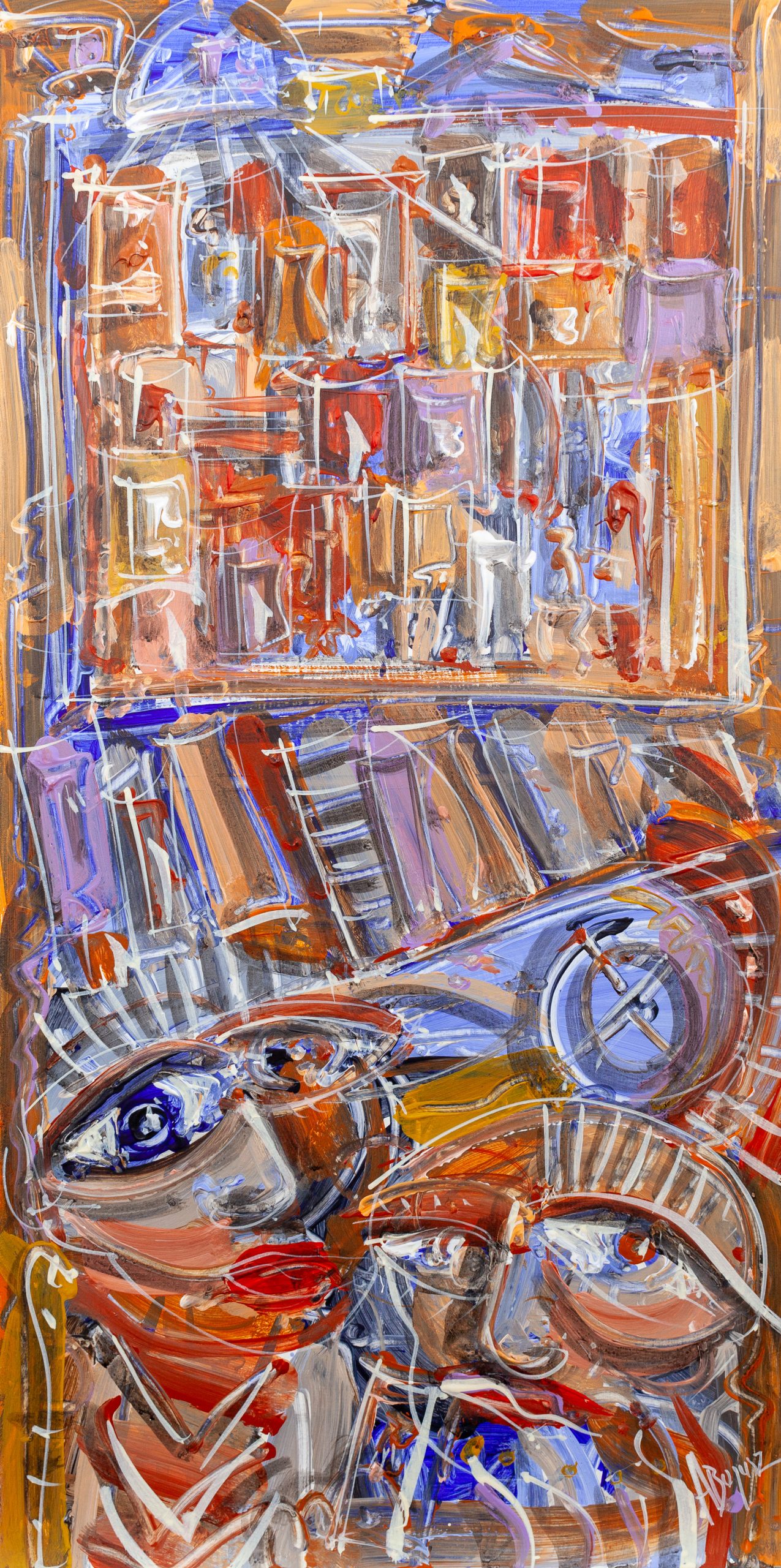 My paintings draw inspiration from a broad range of sources. I’m interested in the mystery of our existence, my family, which includes two children, and the stories that life inevitably throws our way.Â