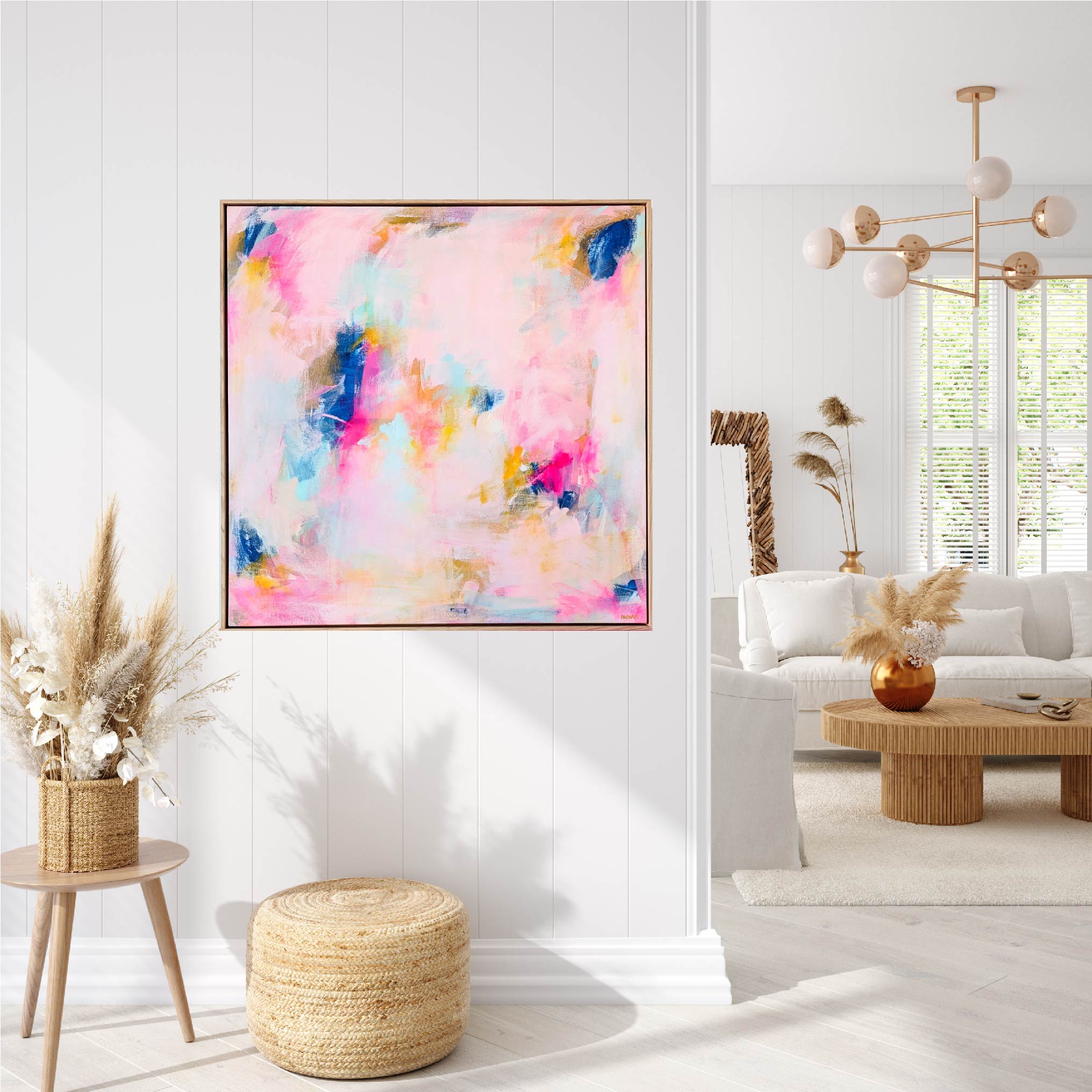 Acrylic on hand stretched canvas framed in Oak.
