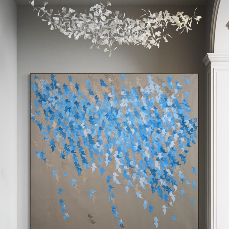 The painted surface was firstly built up with multiple layers of paper and then overlayed with subtle hits of Acrylic Paint, Sugar Spray Packs, Pencils, Stencils & graffiti Paint Pens.
