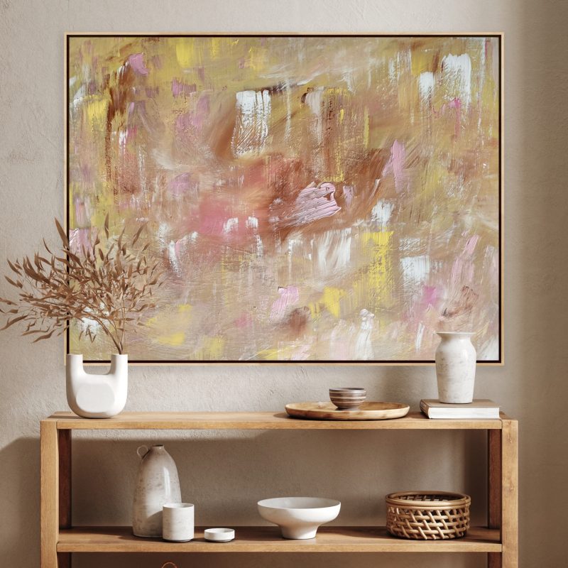 The work comes on a canvas and is set in a box timer painted frame and is ready to hang.