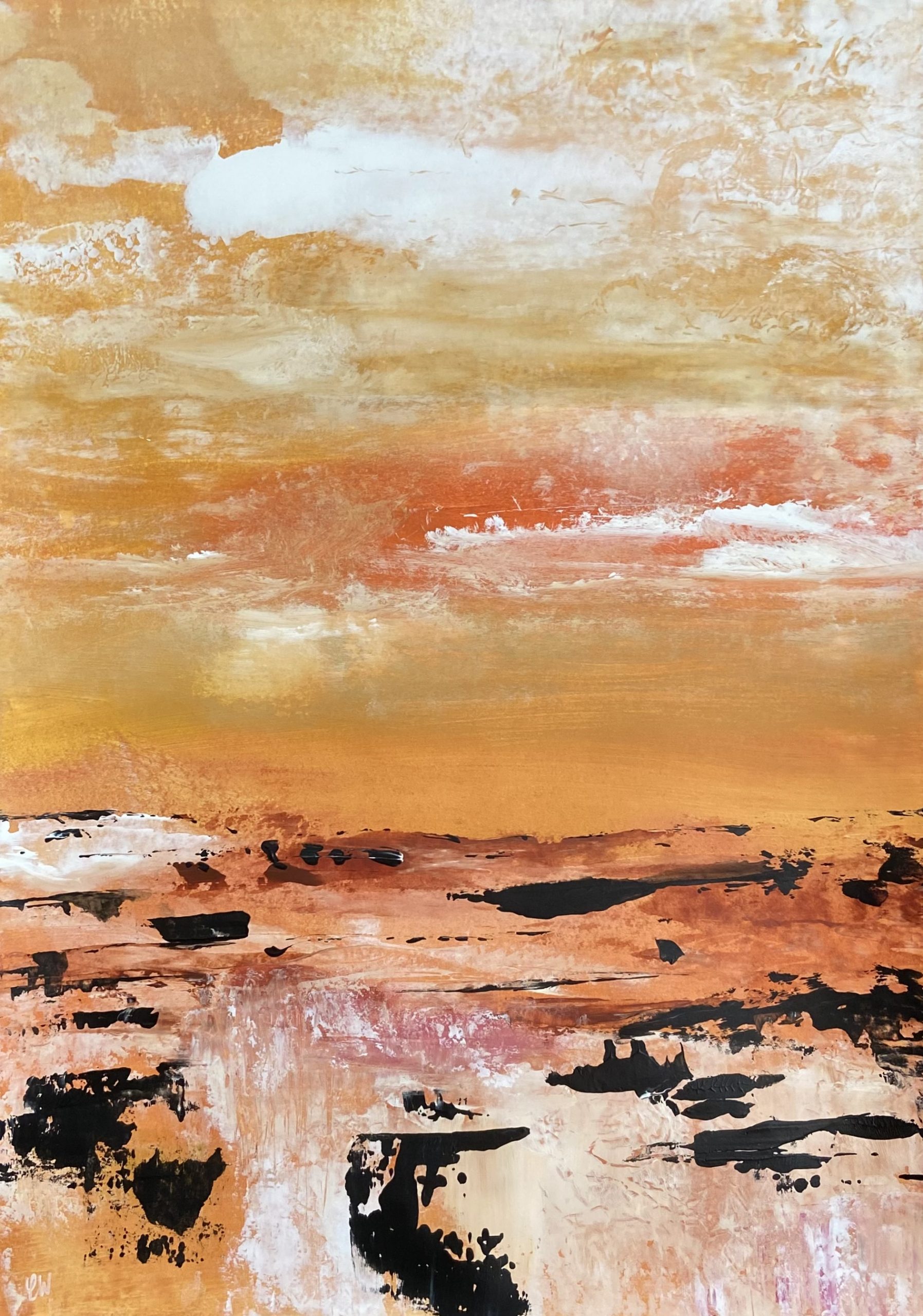 A beautiful abstract landscape painting. 59.4 x 42 cm (A2 size). Acrylic on paper. Frame not included. Requires framing.