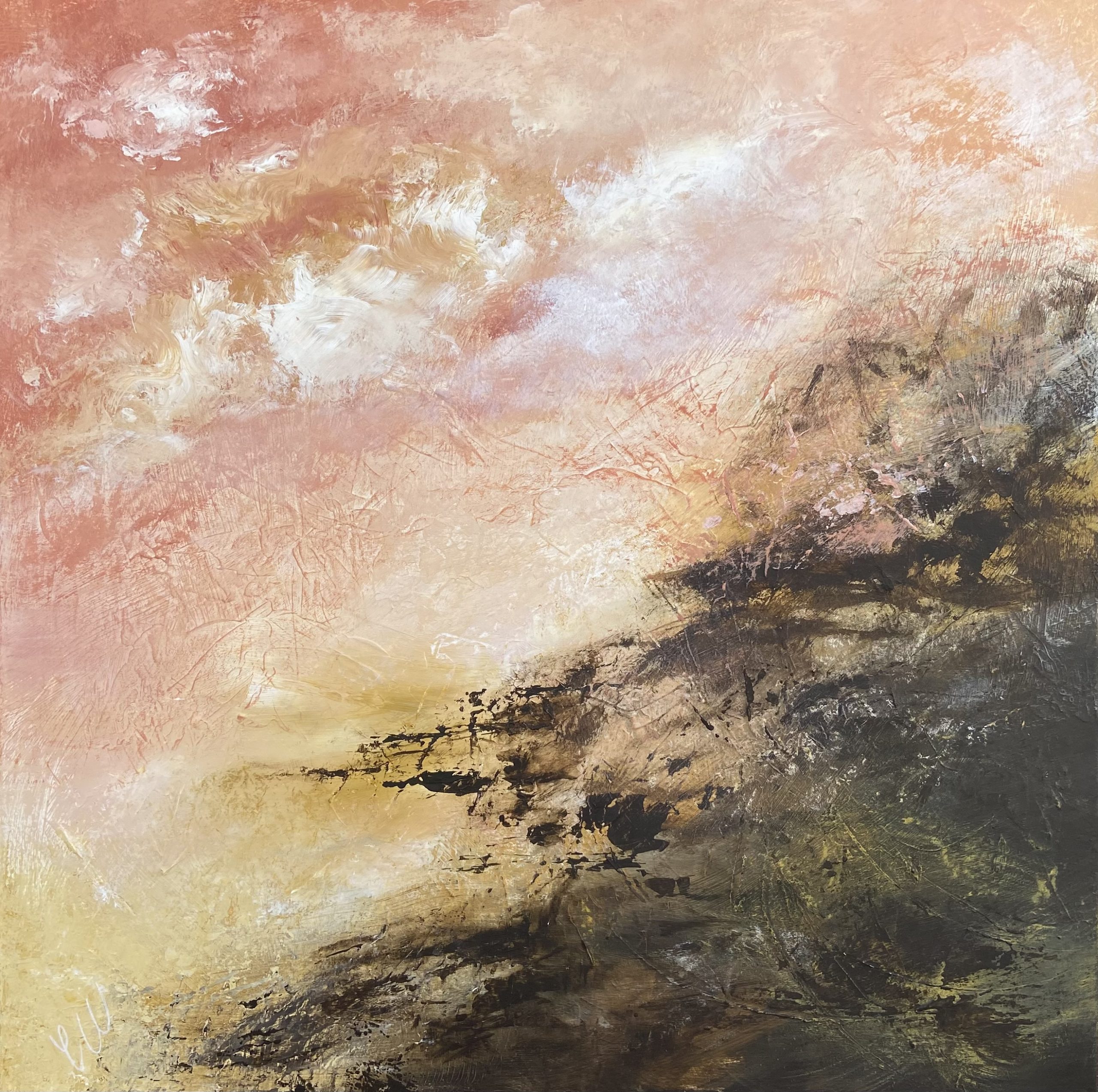 Fading Light by Carrie Welsh is a beautifully textured abstract landscape artwork. Acrylic on canvas, ready to hang. Frame not included. 91.4 x 91.4 cm.