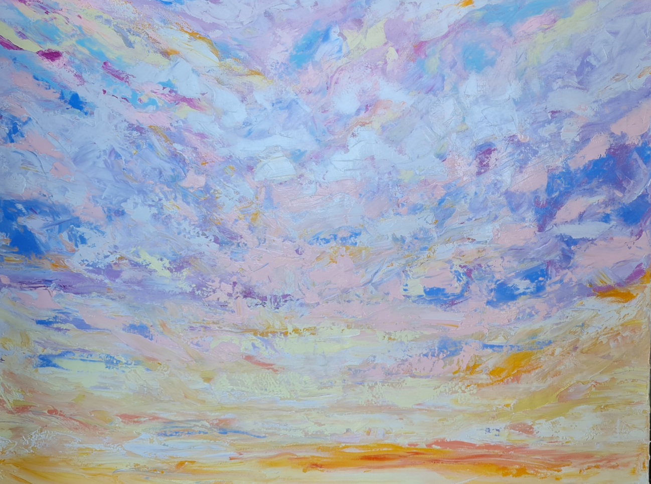 A beautiful pastel piece where the soft pink clouds seemingly drift off the canvas. I have painted the sides of the canvas with a neutral cream colour, which when hung will give the clouds a sense of floating in the wall. This painting hanging on your wall will provide you with a lifetime of grace and reflective gratitude for the beautiful natural world we live in.