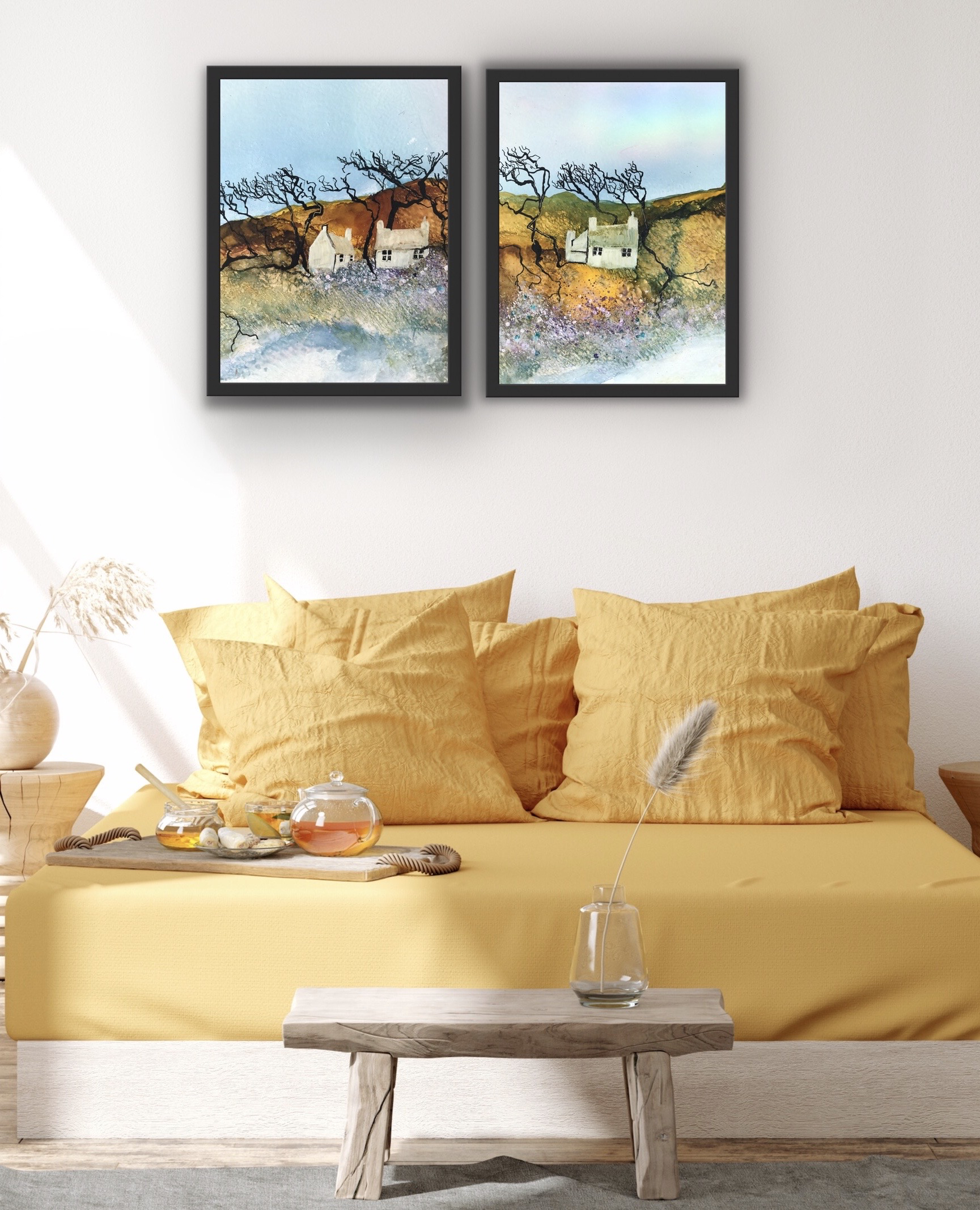 These are two matching works – as a diptych and framed as such in blonde or charcoal frame