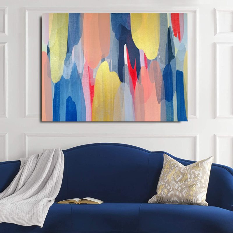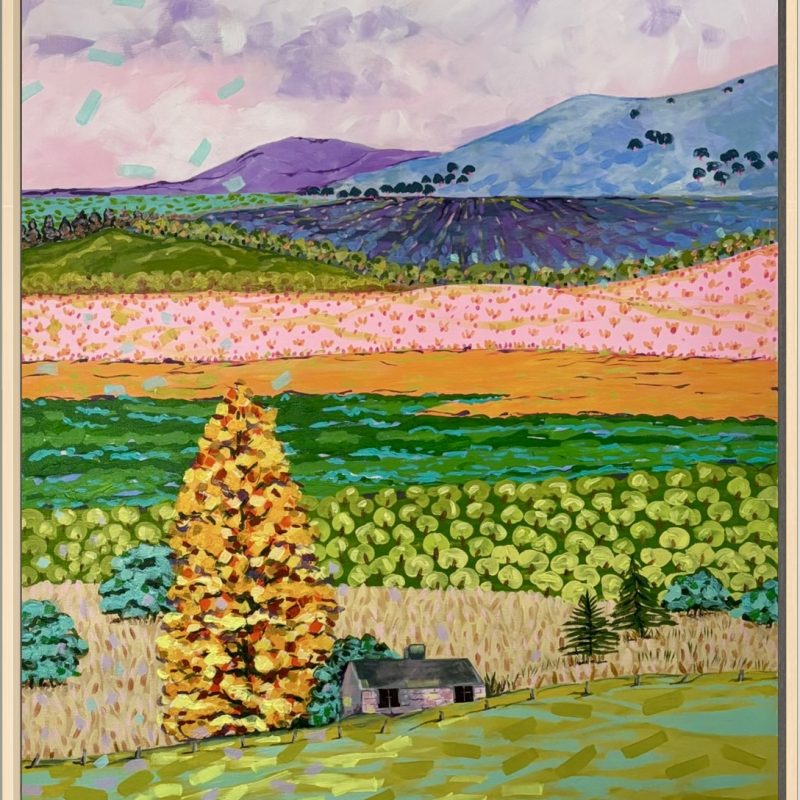 The Painting comes Framed in White and ready to hang and it is mounted under a clear acrylic sheet.