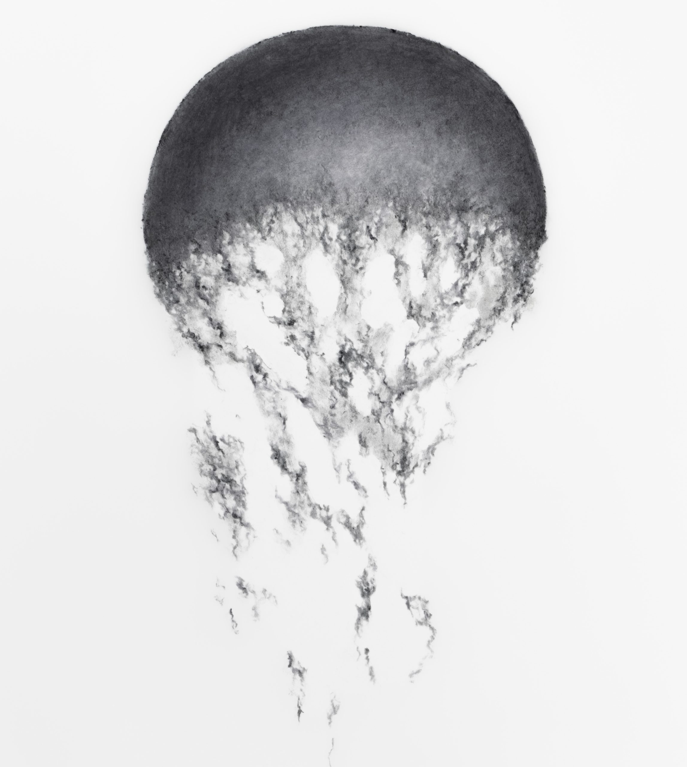 Falling Away by Rihasa Hill – Â This piece is part of a collection of tinted charcoal drawings exploring both the simplicity and complexity of circles, and the organic imperfections created under the guise of precision.