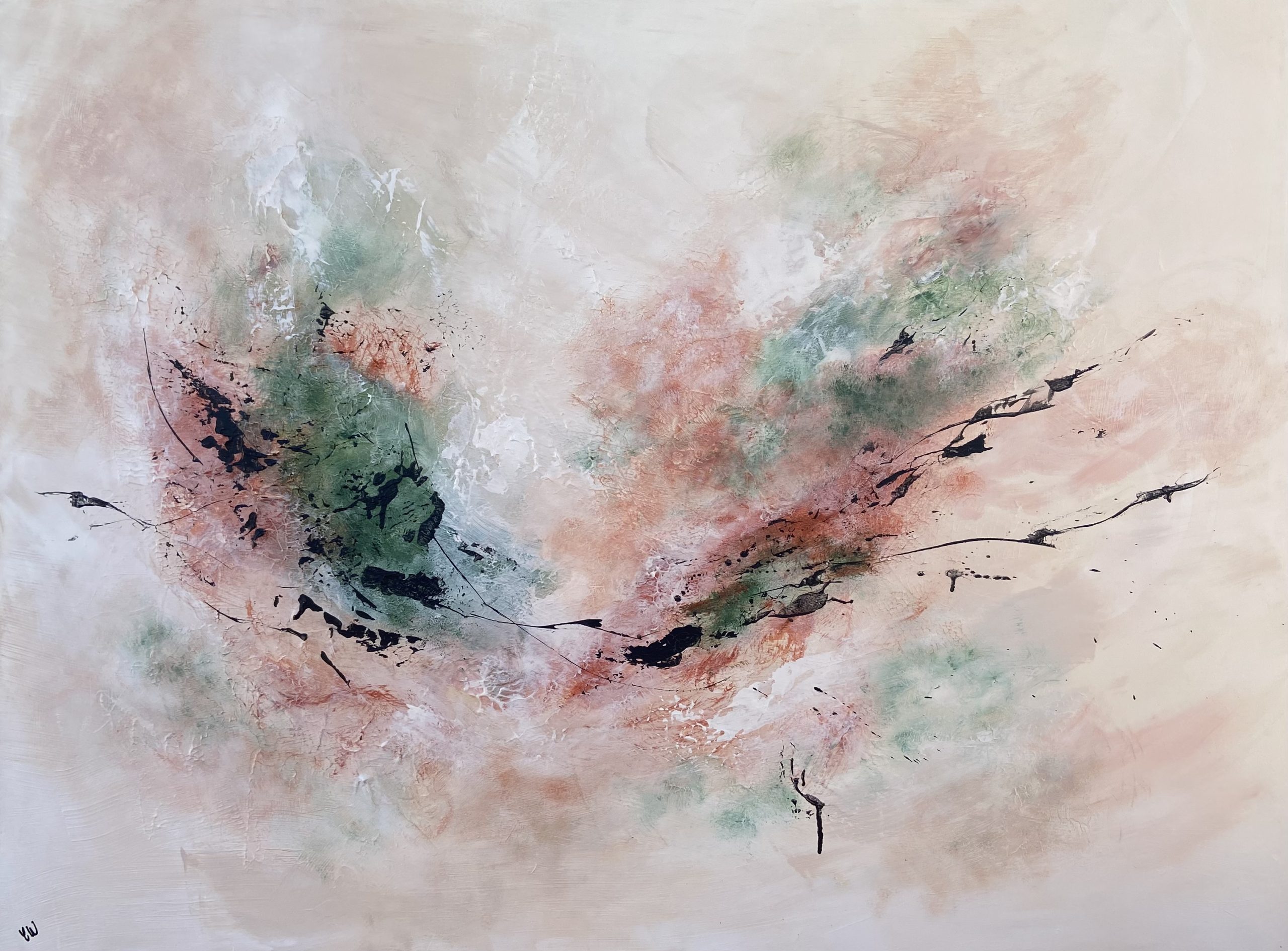 Featherlight by Carrie Welsh is a beautifully textured abstract painting. Acrylic on canvas. Ready to hang. Â Frame not included. 121.8 x 91.4 cm.