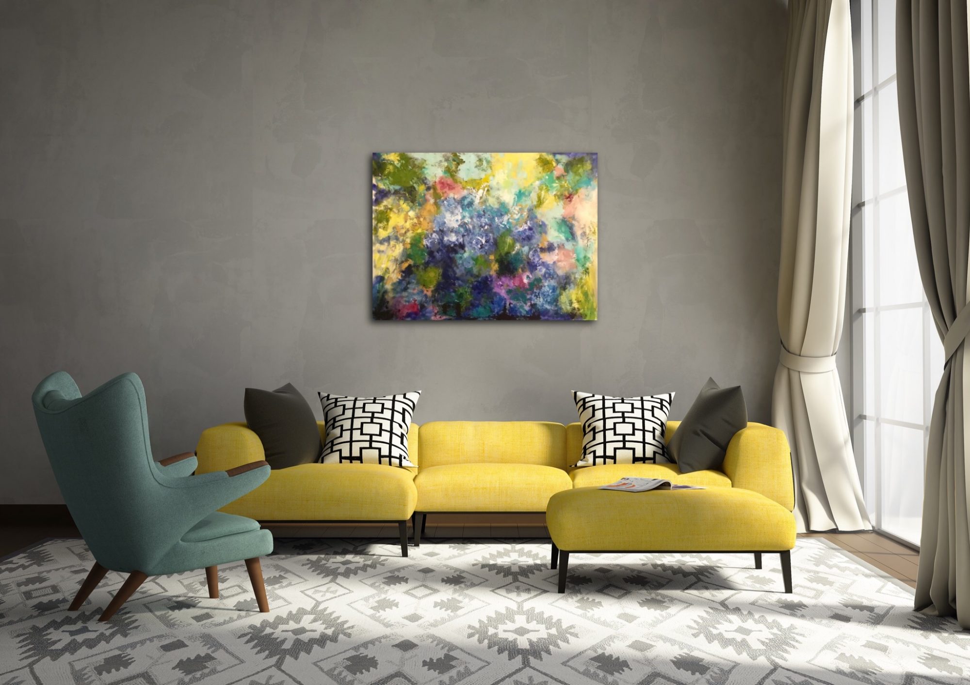 It is that exciting first burst of spring/summer that allow my ideas to run freely over the canvas, it is the way I love to create, no plan or rules just enjoying spontaneous impulses and going with the flow of my brush and palette knife.