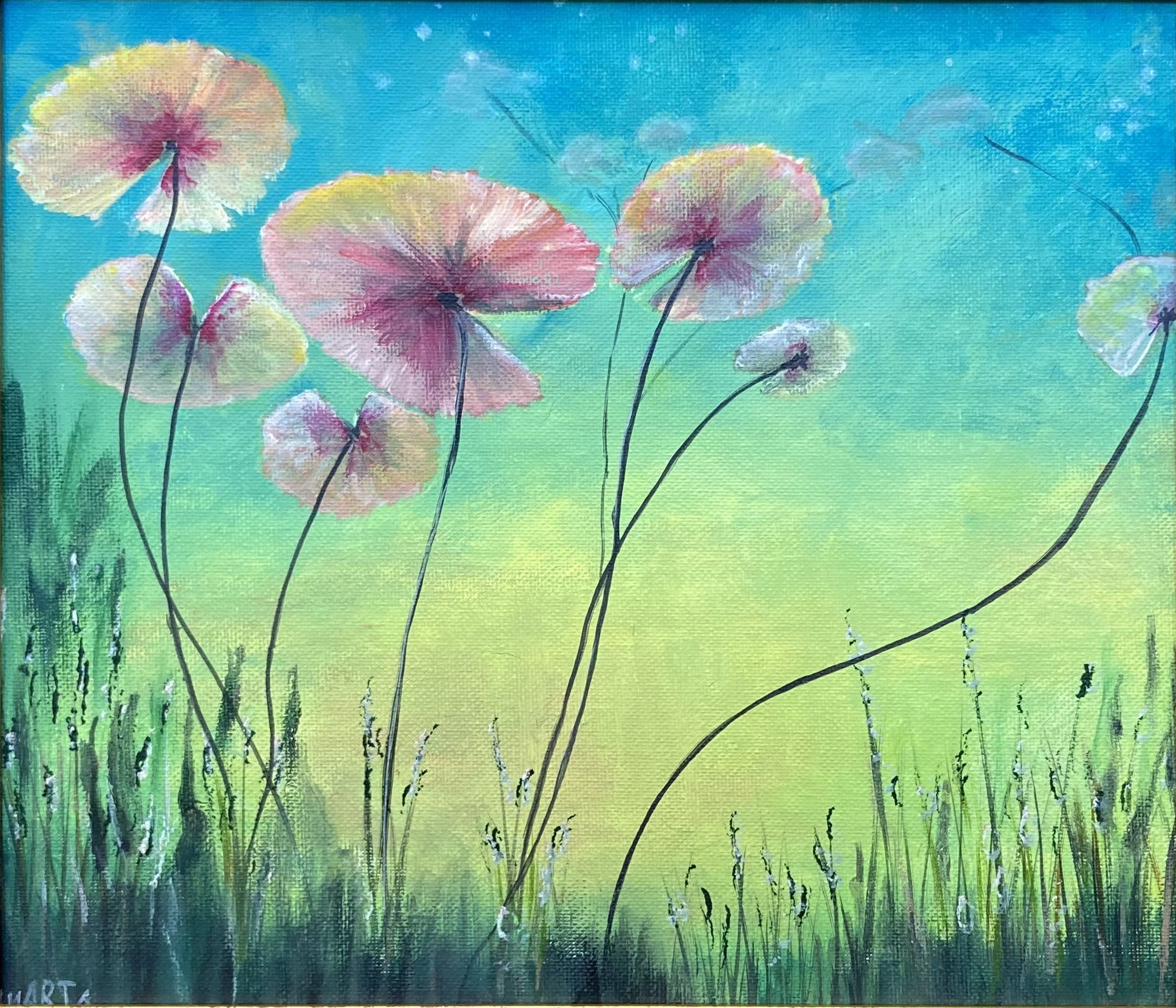 Because of the size of the painting it is categorised as “small format art”. These art works are considered dynamic collectibles, as an art lover can build a collection of small sized original paintings by theme, artist, medium or even just a similar colour.