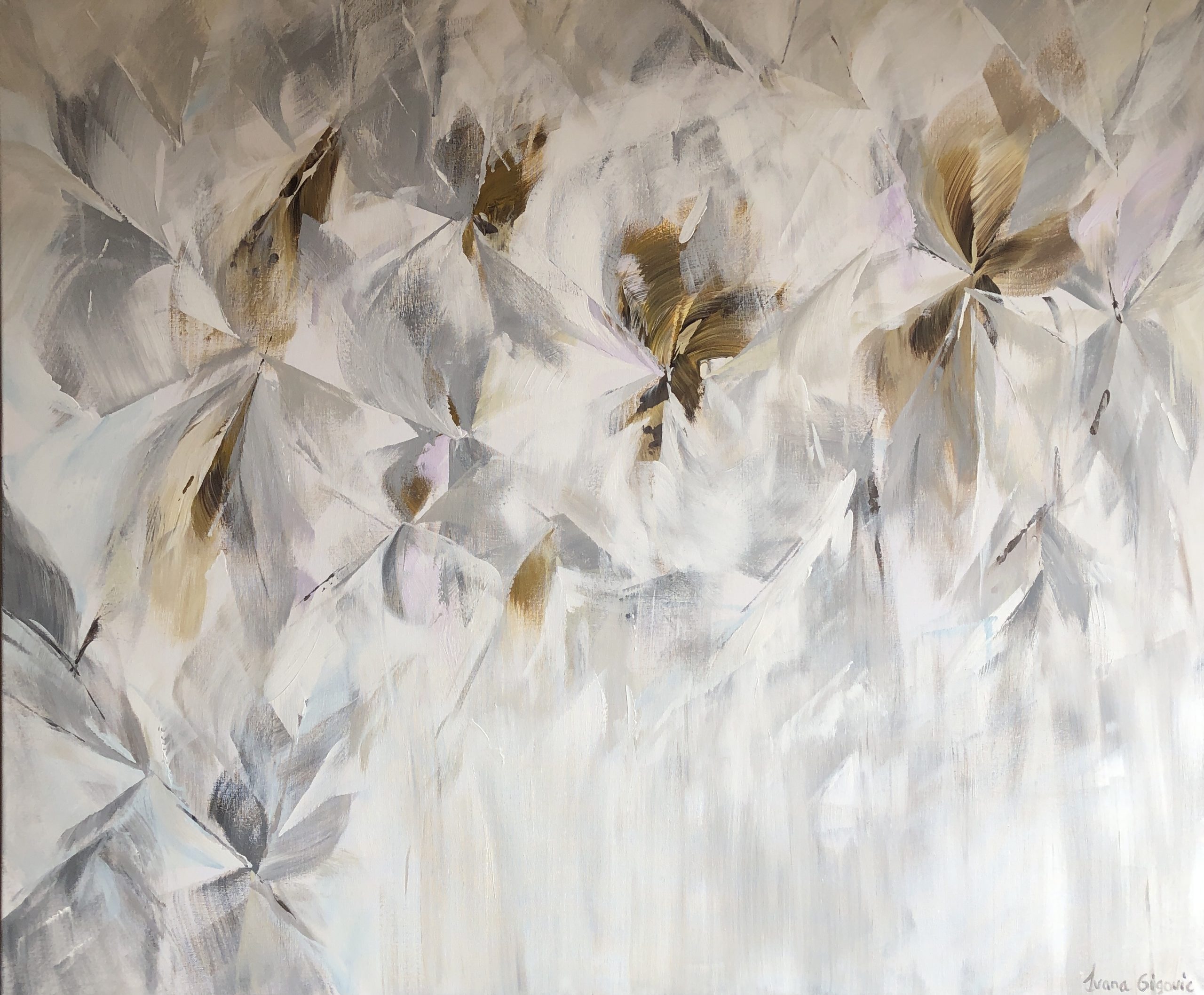 I was inspired by the beautiful flowers I see on my walks to create this piece. I wanted to create something that is neutral, soft and elegant. Something that livens up any room and add a sense of calm and happiness. Grey, beige and white tones highlight this piece with a touch of lilac and brown.
