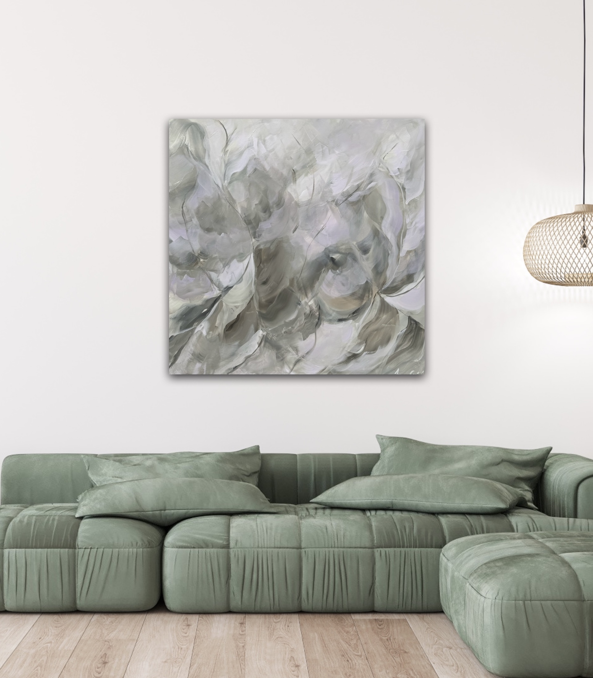 The combination of these neutral colours creates a harmonious and calming palette. Â The deep gray tones serve as a dramatic backdrop, while the white elements create a striking interplay of light and shadow.