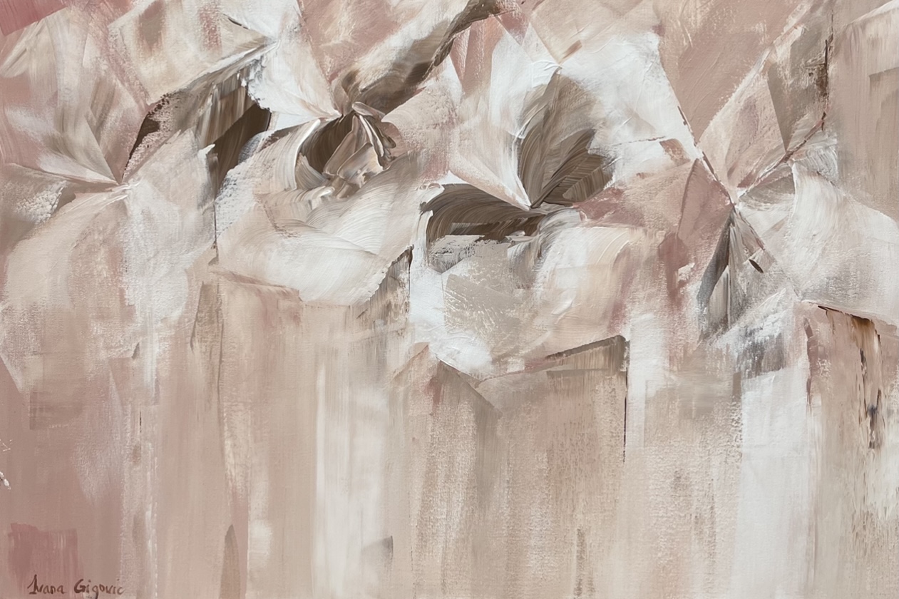 Shades of dusty pink, brown and beige are highlighted throughout the latest piece in my Floral Bliss series. It creates a sense of calm and happiness. A great addition to any room.