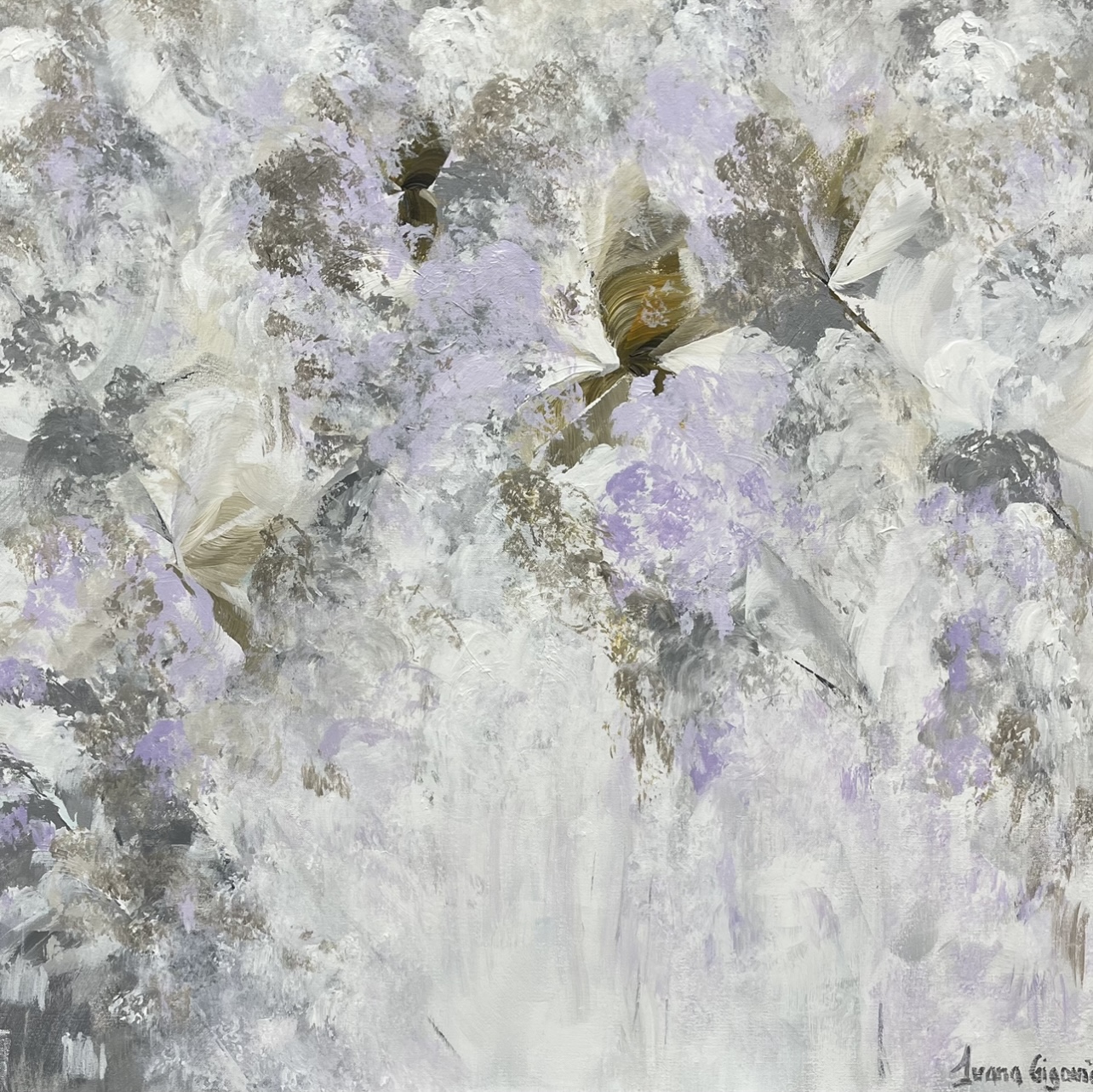 A soft and calming addition to my Feels Like Spring series. This painting focuses on soft lilac and gray tones to create something that is a great feature in any room.