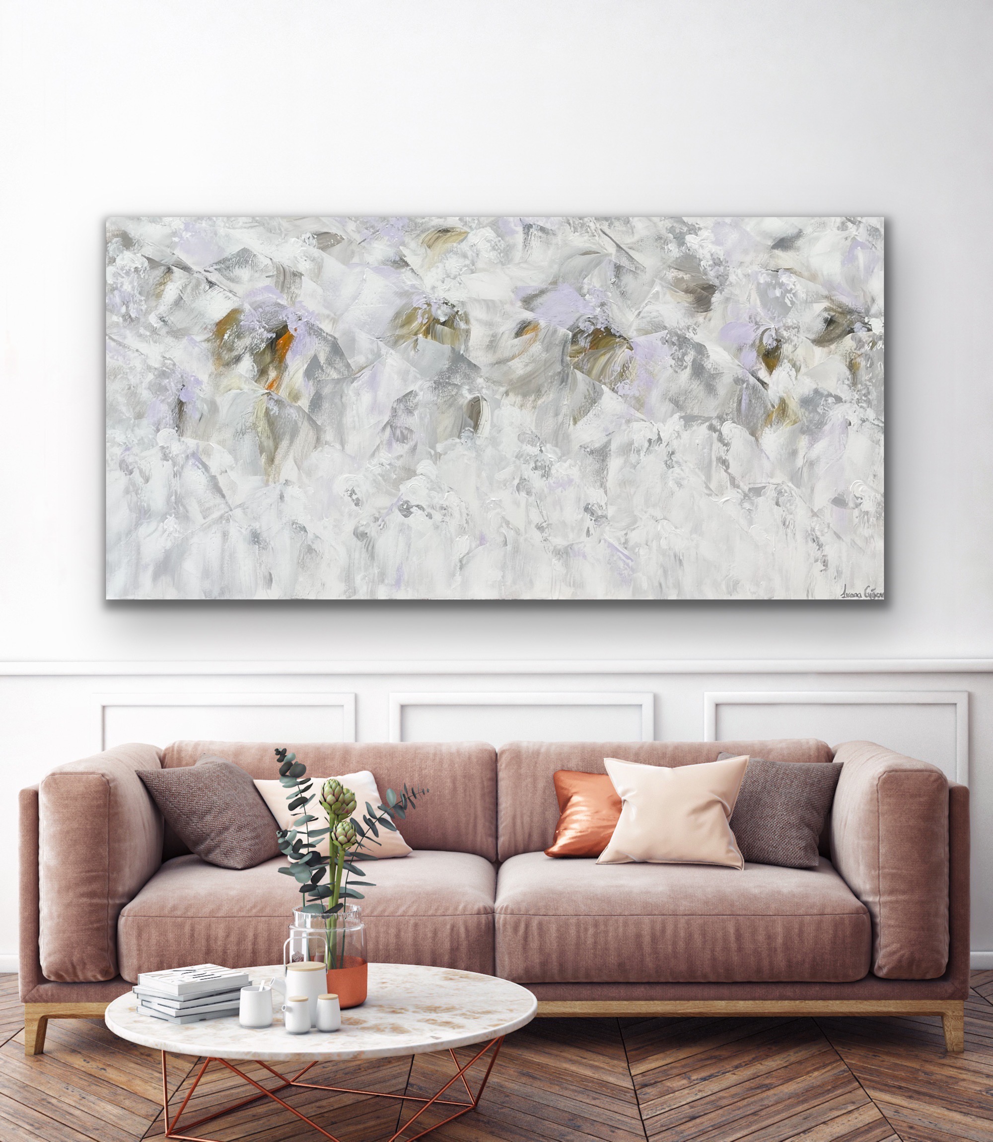 This painting was inspired by the beautiful flowers I see on my walks. I wanted to create something that felt calm, soft and elegant. Neutral tones compliment any space beautifully adding a sense of peace and happiness.