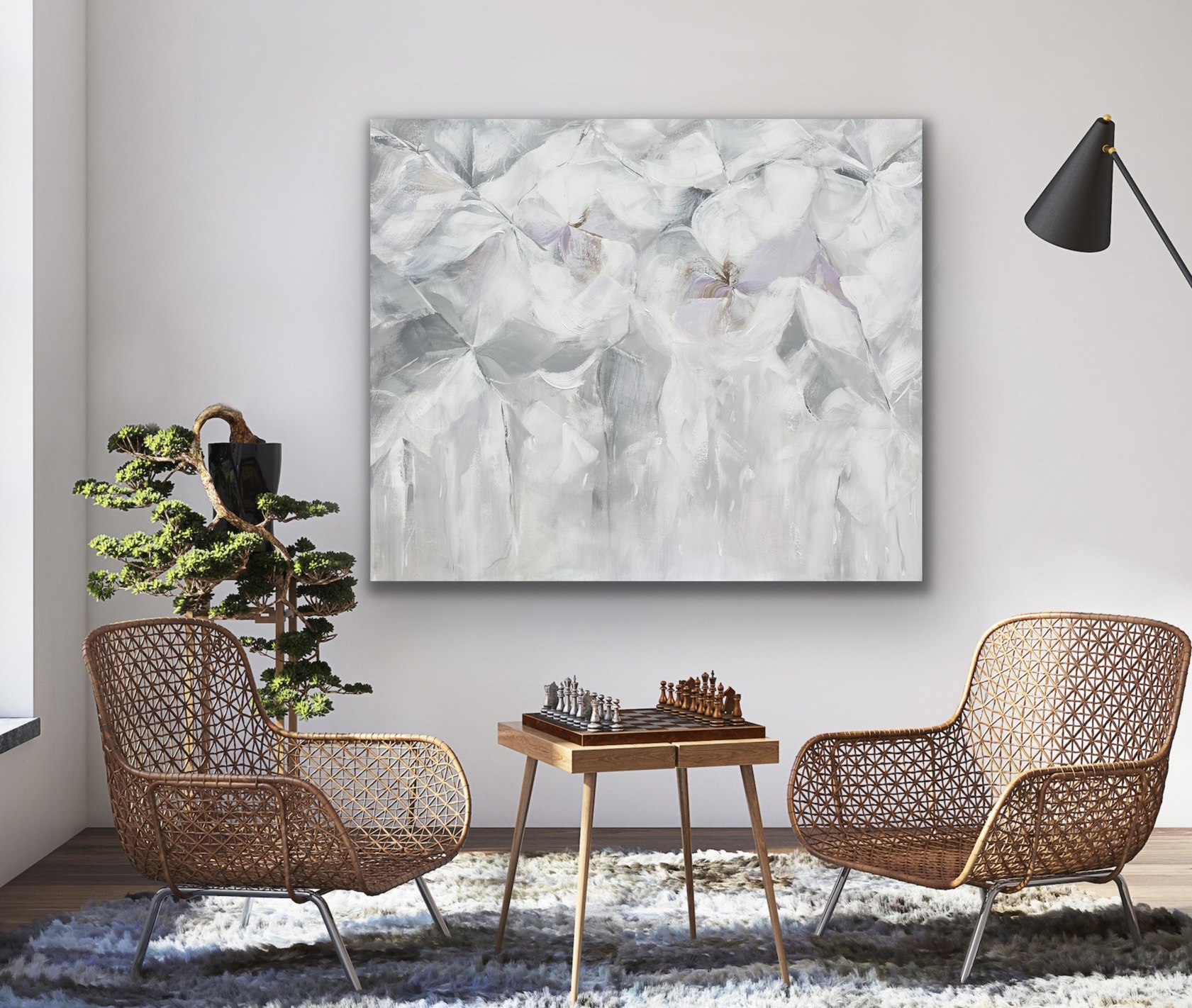 This painting was inspired by the beautiful Spring flowers I see on my walks. I wanted to create something that felt calm, soft and elegant. Neutral tones compliment any space beautifully adding a sense of peace and happiness.