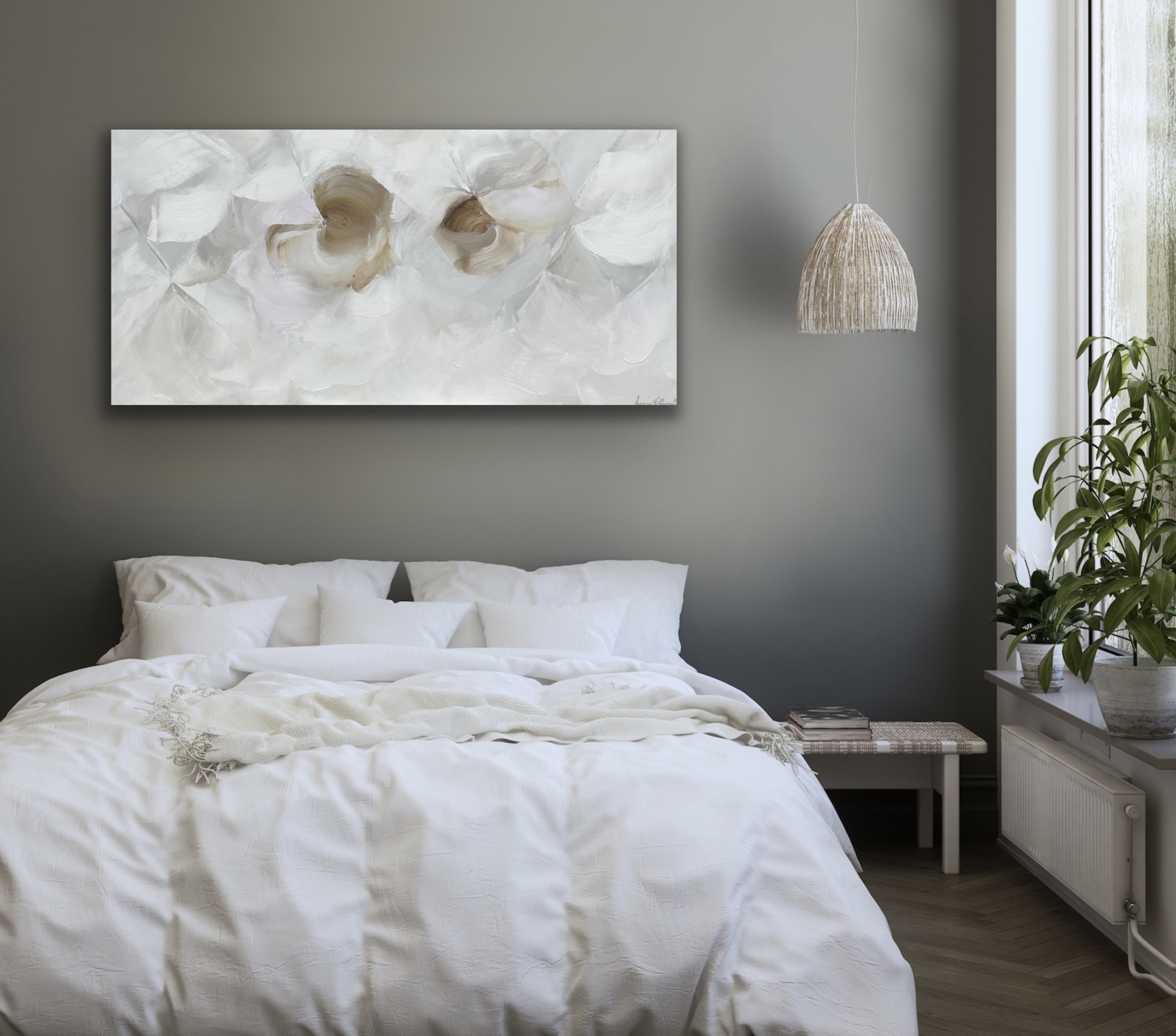Feels Like Spring No 53 by Ivana GigovicI wanted to create an artwork that resonates feelings of calmness through soft beige and grey tones. White and a touch of lilac add light throughout this piece to create a calming addition to your home.