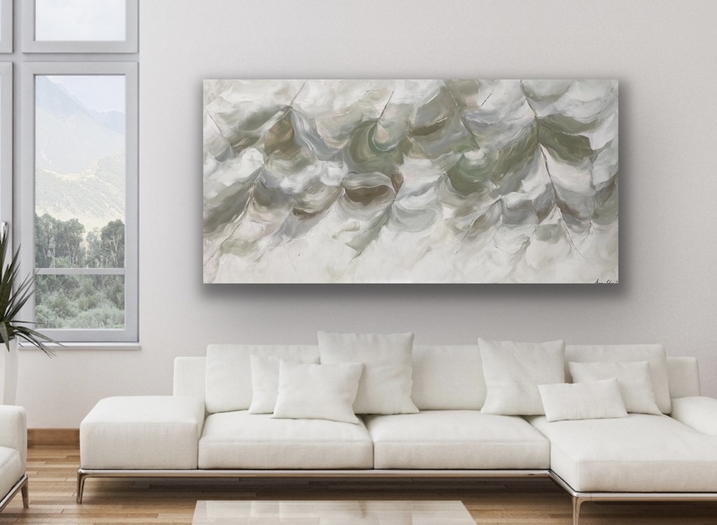 Designed to transport you to a realm where imagination takes root, this painting evokes a sense of enchantment and serenity that will leave you mesmerised. The soothing shades of grey and green intertwine with touches of pristine white, creating a harmonious dance of hues that will effortlessly enhance any living space.