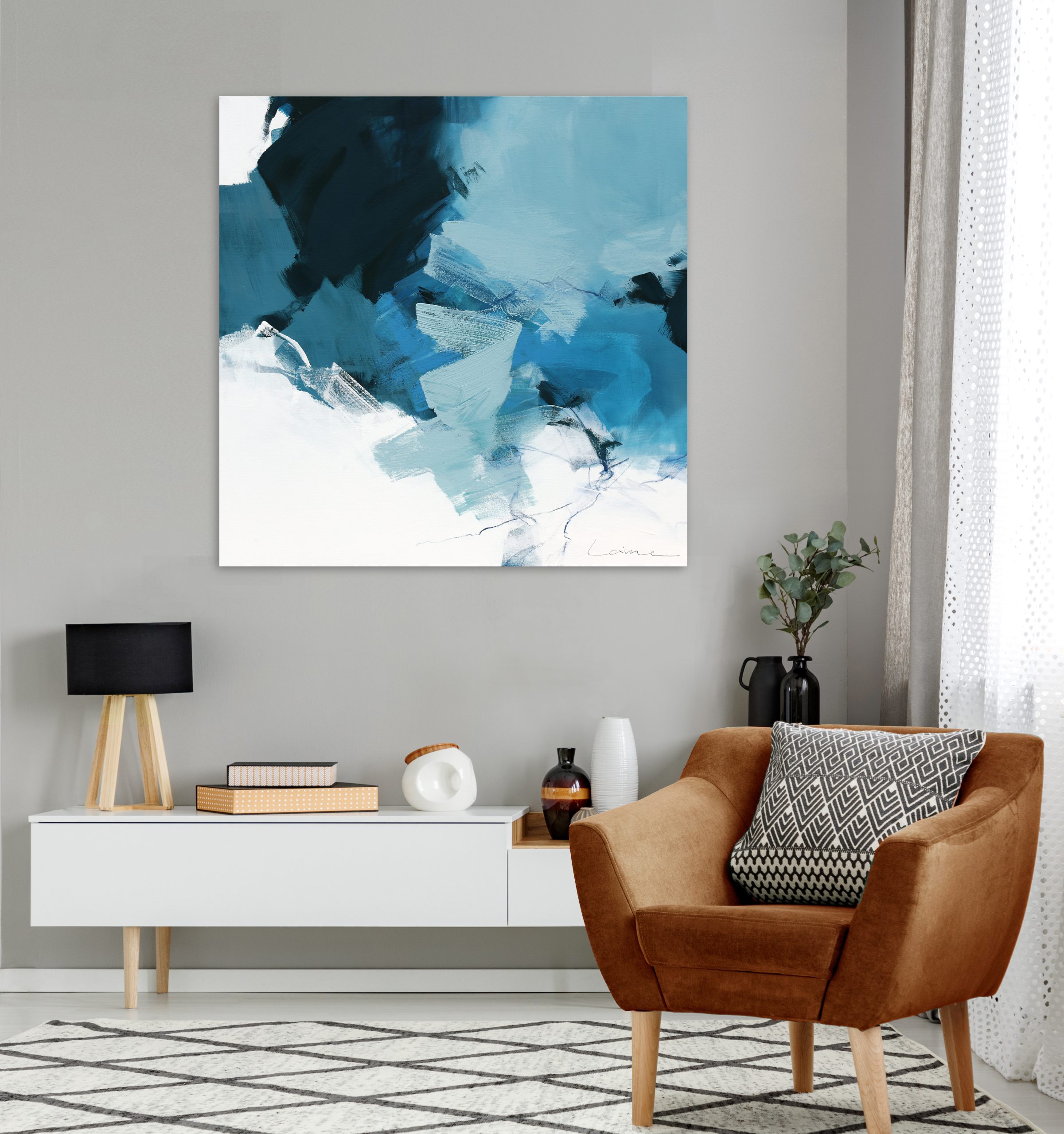 Felice (Happy) by artist Stephanie Laine is a new abstract painting from her ‘Fresca’ series which focuses on the balance between spontaneity and consideration. ‘Just like in life it’s important to plan some things but also leave space for passion and intuition to guide us. A perfect blend I think.’