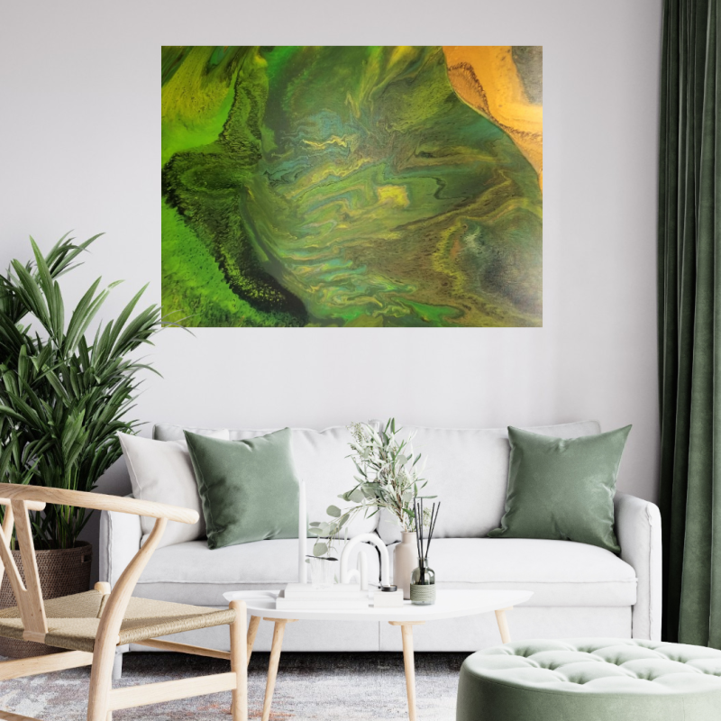 Fern Fever by Jorgina Sarahs is a mixed media celebrating strength and nature . A vibrant fern frond across a deep , moody background of gold foil . This creates a striking contrast between the natural beauty and adding luxury and elegance ,The textured surface invites close inspection, revealing expressive brushstrokes and subtle tonal shifts that capture the life of the fern , Fern Fever evokes a sense of grounding and calm, while honoring natures ability to thrive and flourish. Its a statement piece that brings warmth , balance and connection to any space .