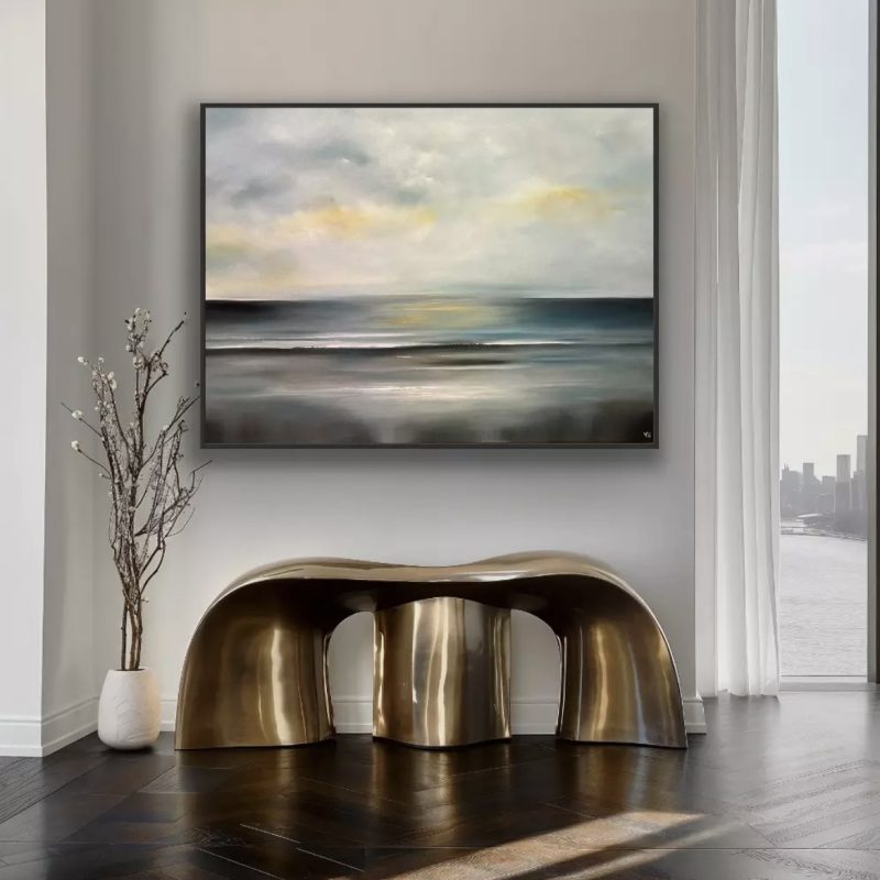 The luscious, buttery texture of the oil paint adds a luxurious dimension to the artwork. The edges are painted to match the background. Varnished and signed on both the front and back, this piece is ready for display.