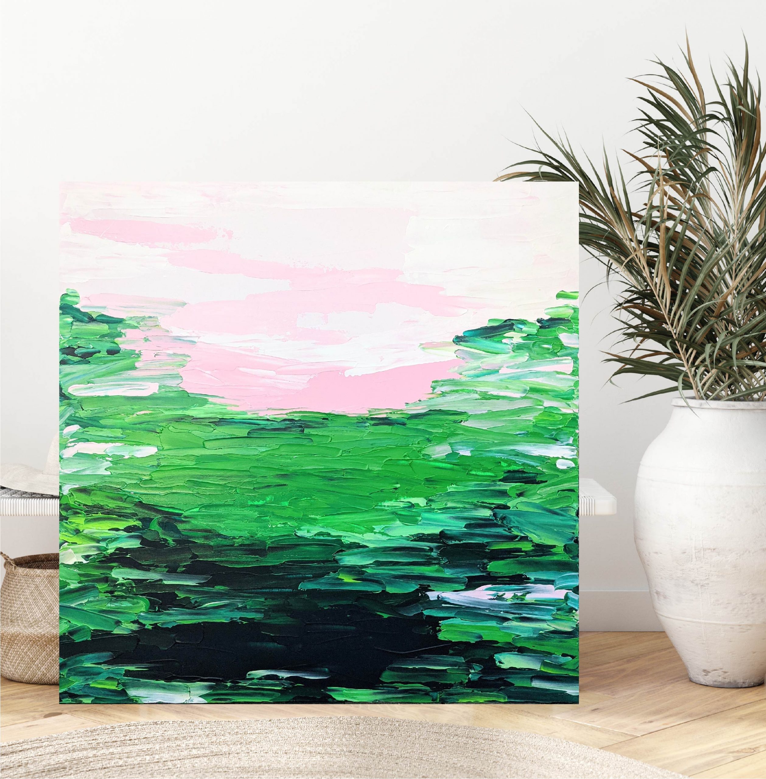 Take a walk with me down memory lane, through strawberry hills and meadows filled with wild flowers…lie on your back in the soft grass and look up at the sky…little abstract landscape to bring some joy and connection to nature. I am drawn to these colours and dreaming of rolling hills and green pastures…