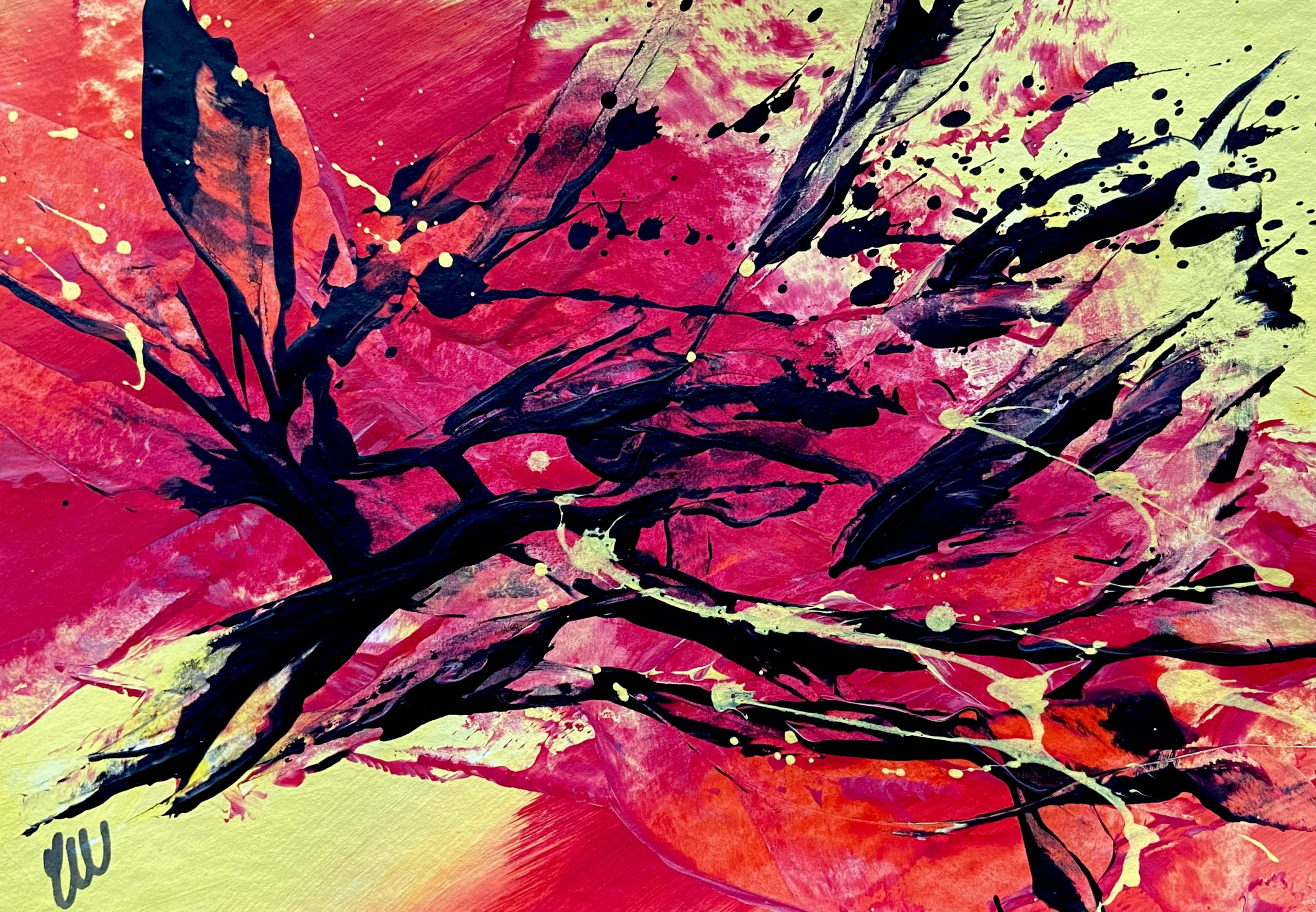Fierce by Carrie Welsh is a beautiful and striking abstract that will bring life to any space! Some images show what this piece looks like framed. Frames not included. 21 x 29.7 cm (A4 size) Acrylic on paper. Requires framing.