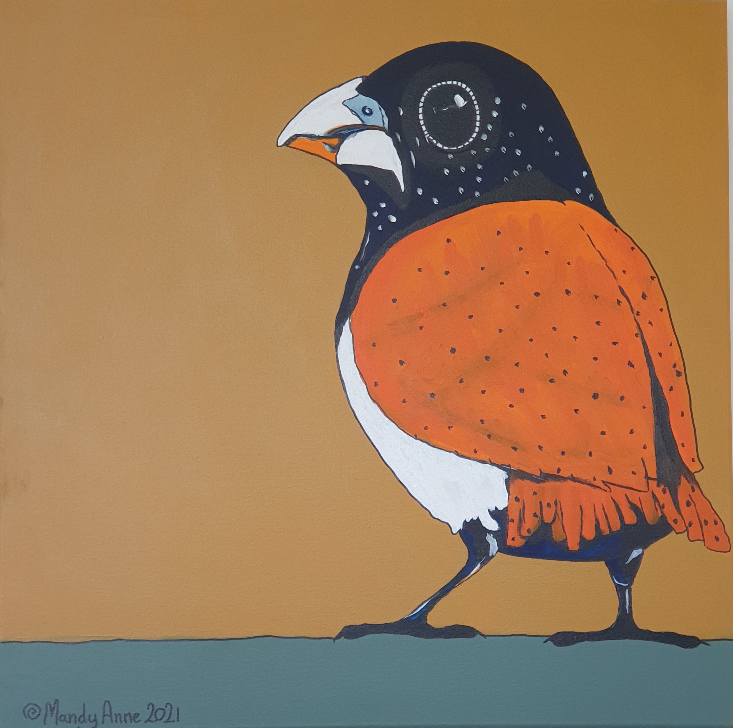 Mandy was inspired to create this sweet little painting after seeing all the gorgeous finches visiting her garden at the moment. The combination of Antique Green, Yellow Oxide and Cadmium Orange will add a splash of colour to any wall.