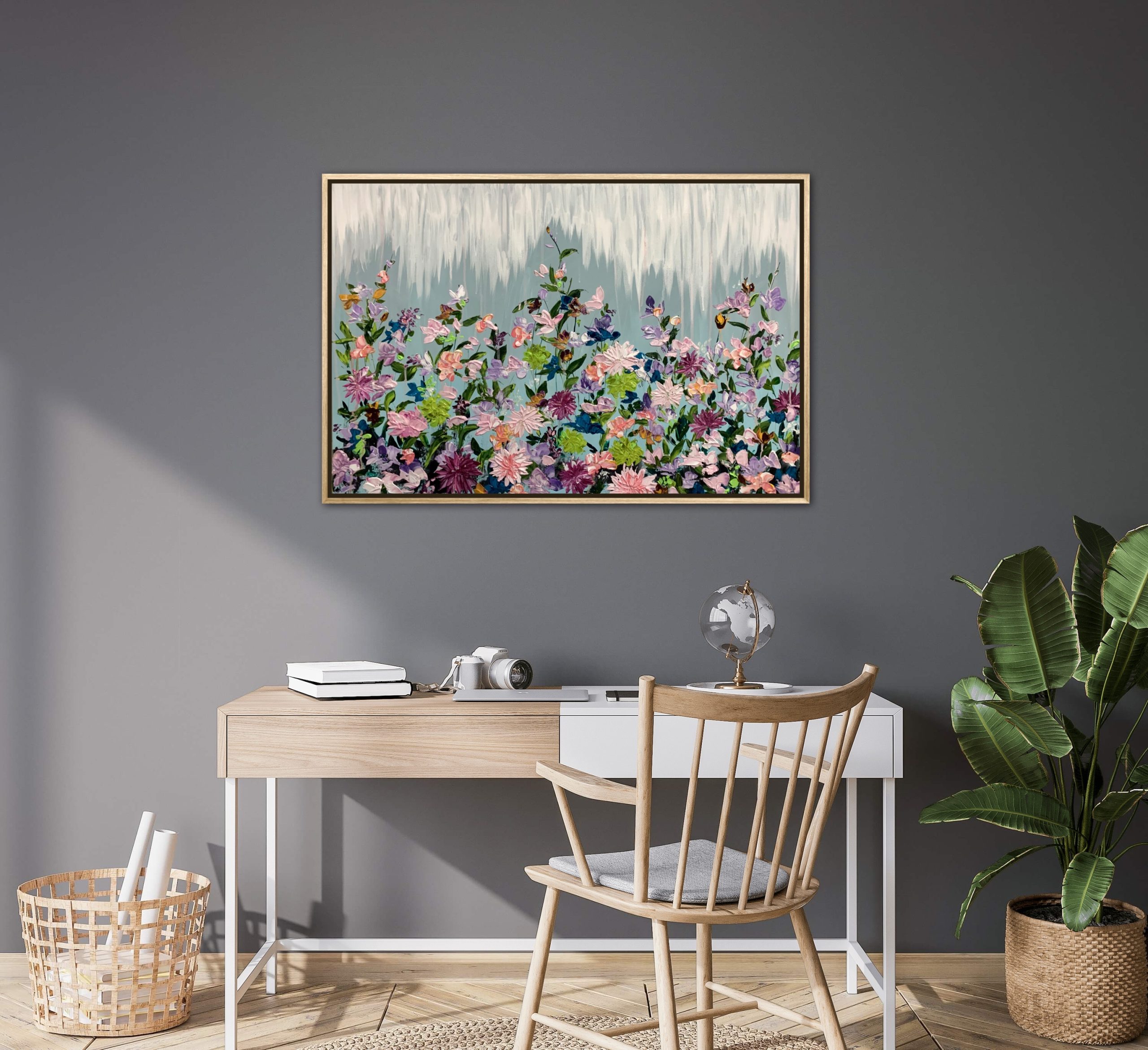 I have painted this heavy textured abstract floral artwork using impasto technique with palette knife and sides are painted black.