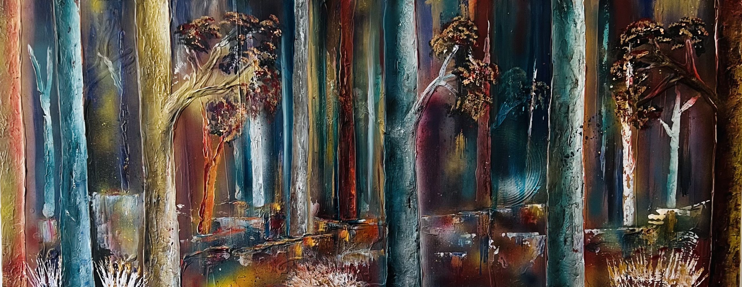 Fire Forest depicts the luminous moments of light we encounter when walking the Australian bush. It’s beautiful but also reminds us of the constant vigilance we feel in the summer forest.