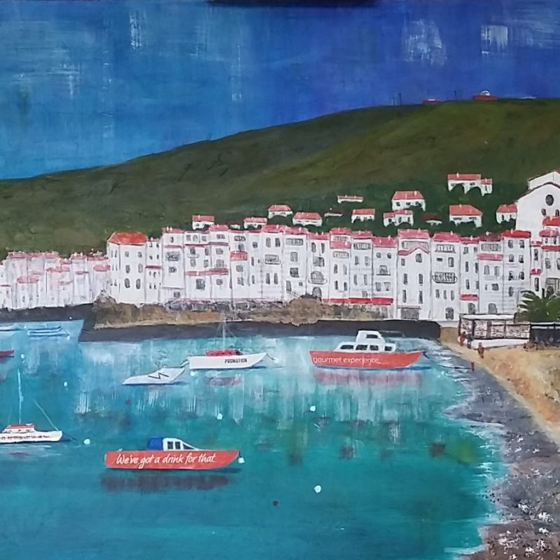 Fish Wave With Sand by David Clare –Â An oil painting of a school of fish swimming through a shallow wave. Inspired by schools of fish splashing through turquoise shallow waves. Lots of action, and cool colours in this painting.