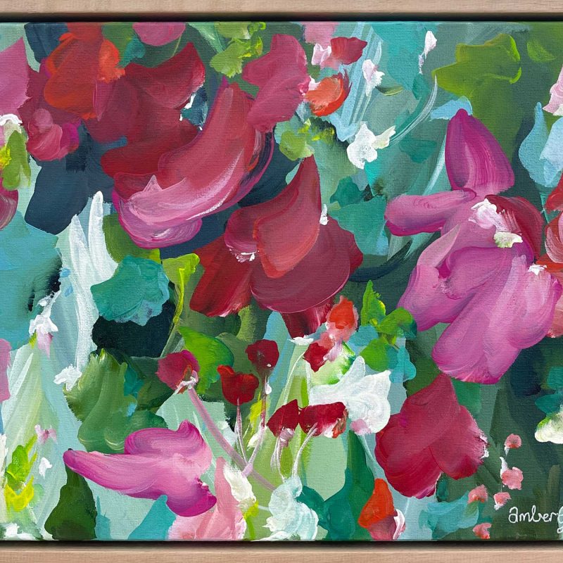 The work comes on a canvas and is set in a box timer frame painted black and is ready to hang.