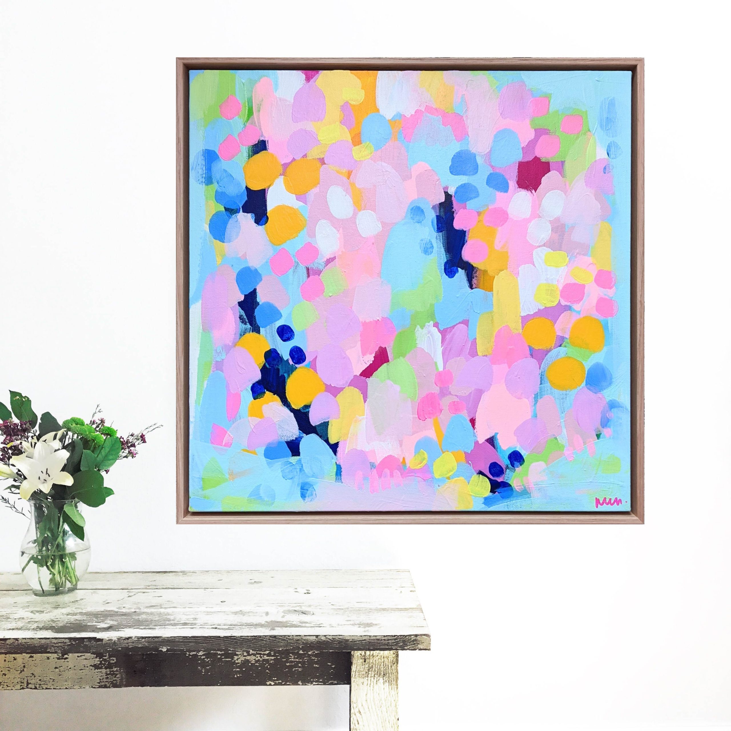Fleur by Maggi McDonald – The first artworks in my new Dopamine Garden Series. Bright, bold colour inspired by my grandmother’s garden and fond memories from my childhood using my signature bright colour palette.
