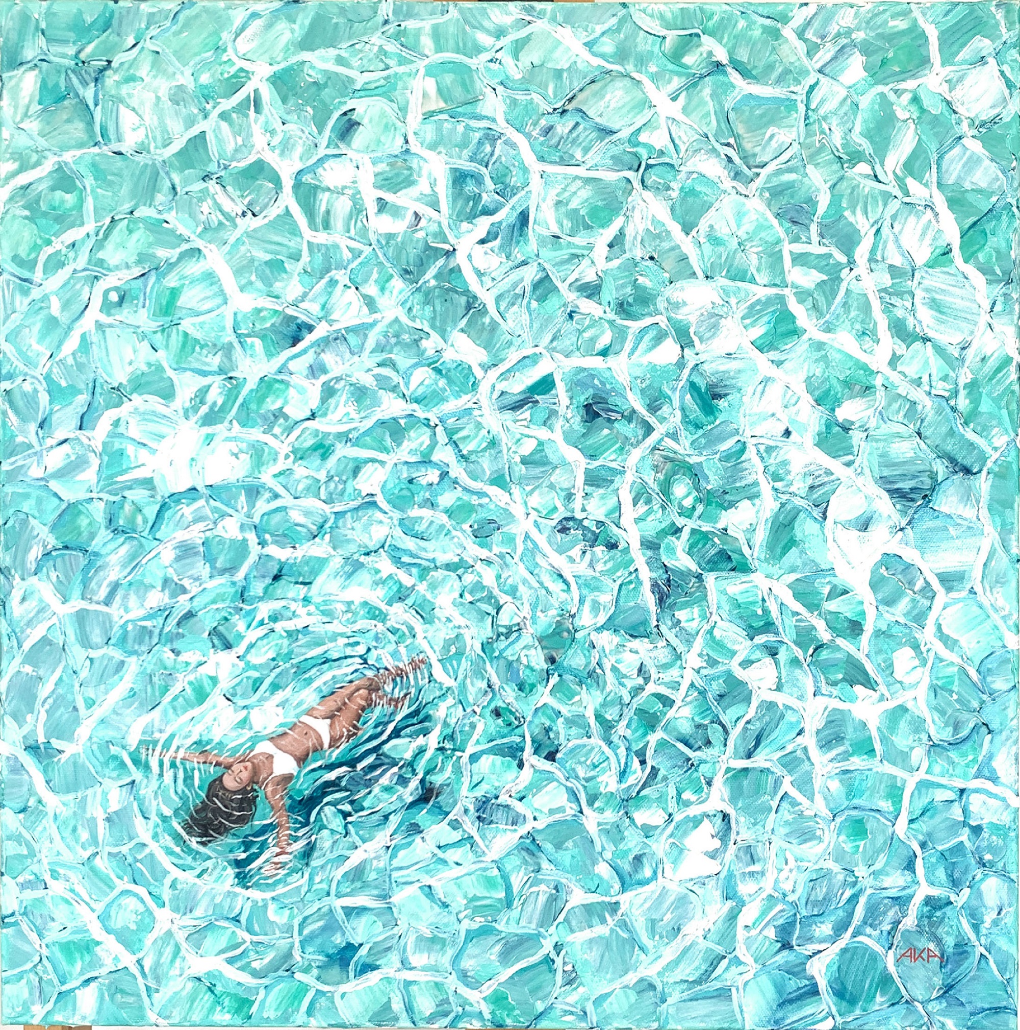 This is a bird’s-eye view from a woman floating in crystal clear water. She is held on the surface floating in bliss and weightlessness. She closed her eyes and cleared her mind. No thoughts to disturb her, just harmony.