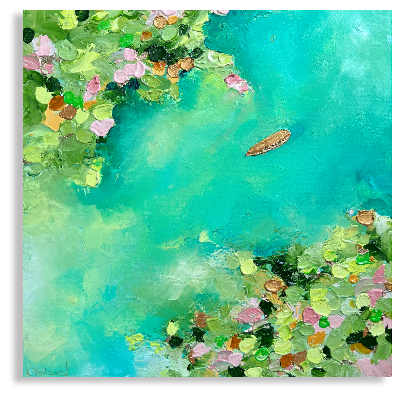 - Artist’s signature on the front and back along with the name of the painting, year of creation and size