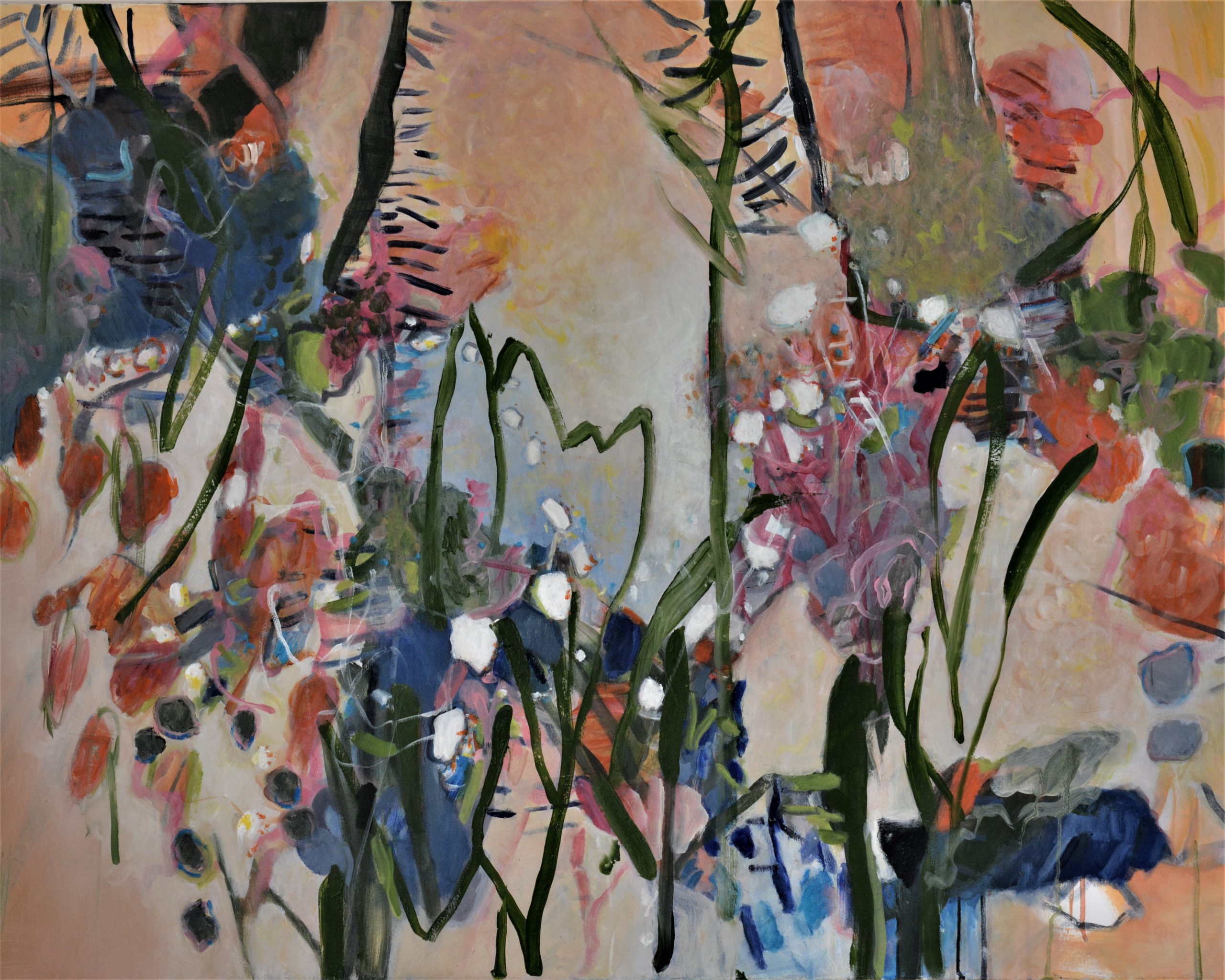 “I love being immersed in nature and draw inspiration from my coastal and bush surroundings especially local and hinterland creeks and streams. I work abstractly to reinterpret nature’s patterns, rhythms and colours”.