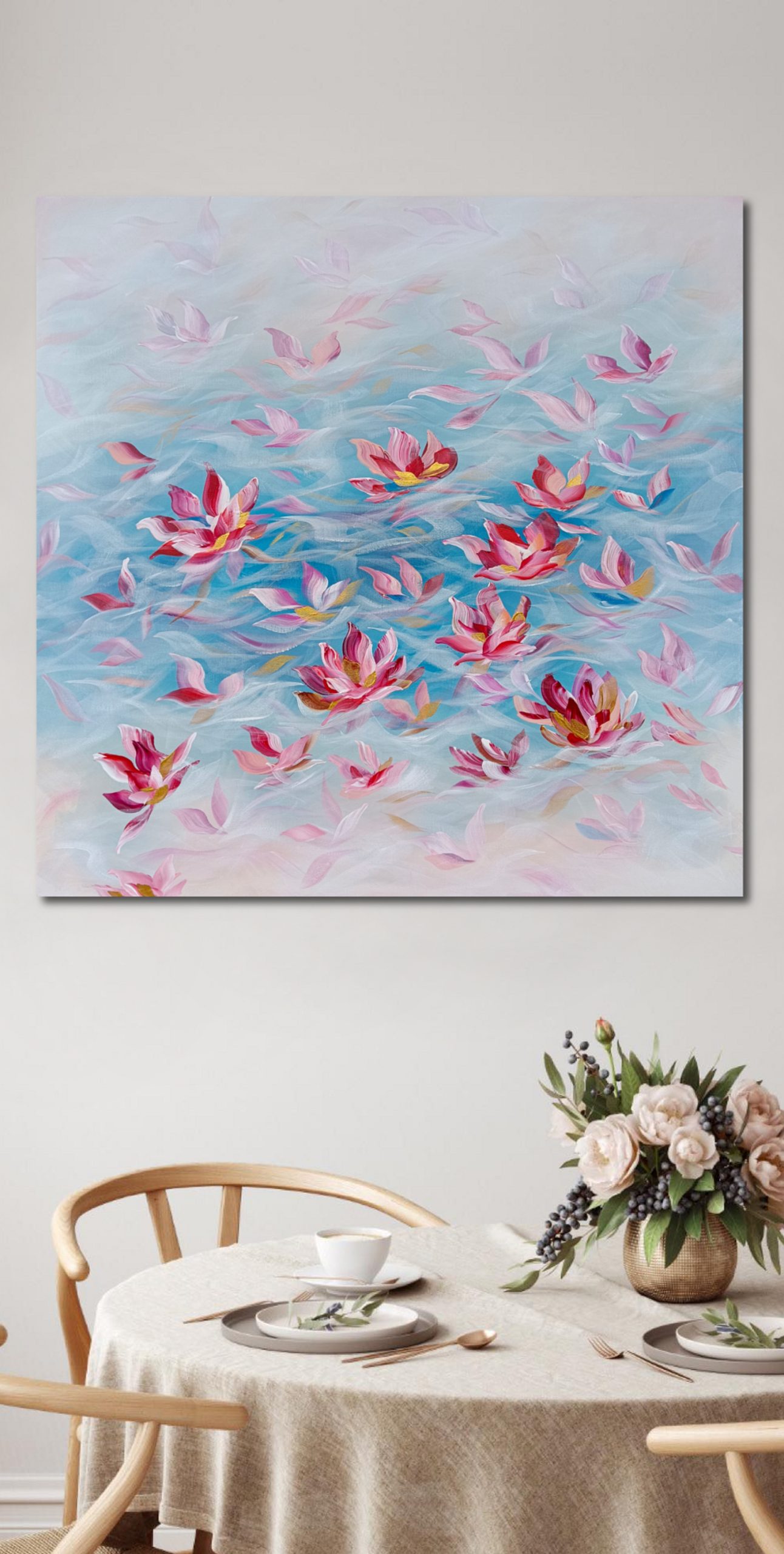 ‘In situ’ photos have been included to help with visualization of the artwork in your home. In situ photos provided may not be perfectly to scale. This being said, every effort has been made to represent the size of the art accurately but please read the dimensions of the artwork to ensure it fits your space perfectly.