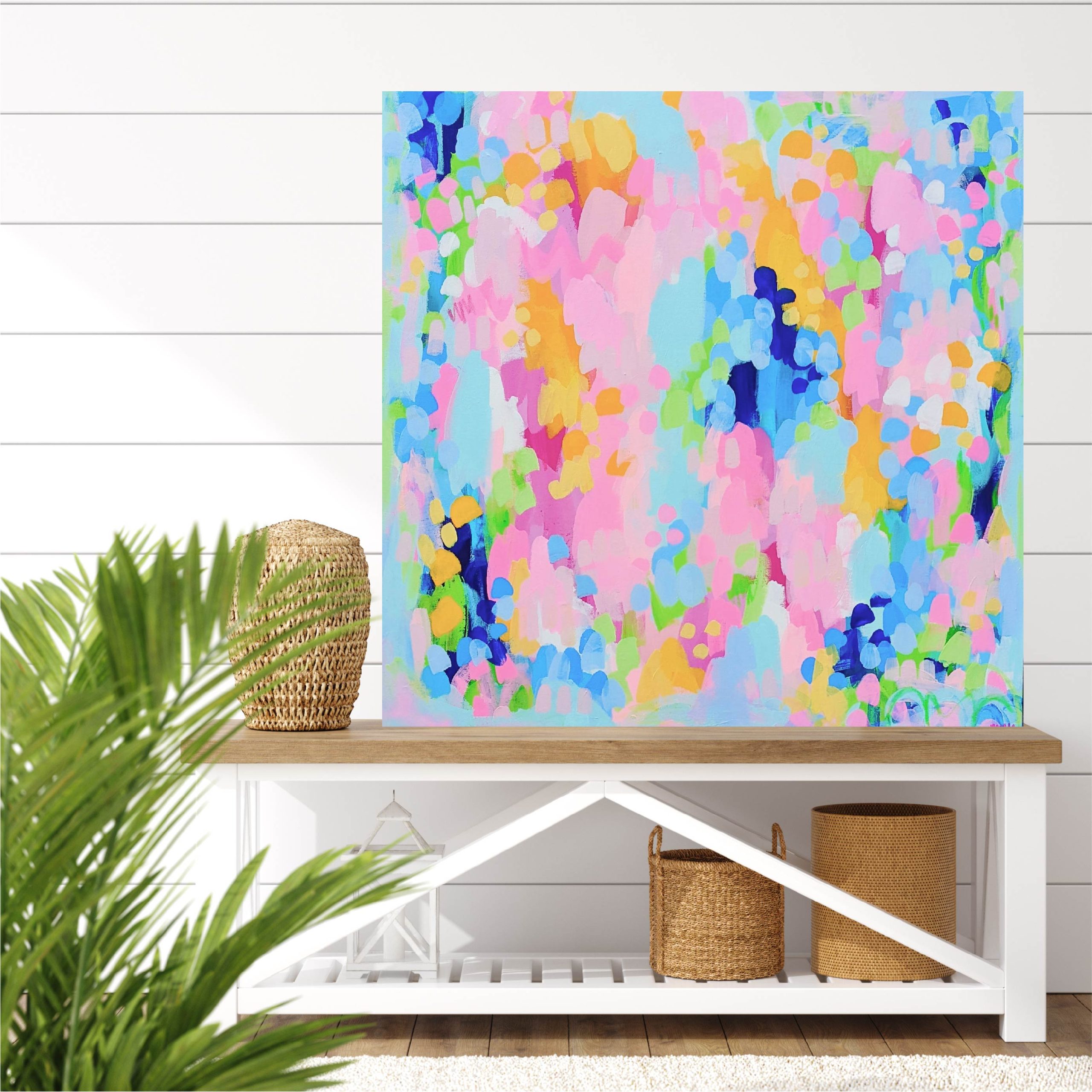 Floralie by Maggi McDonald – The first artworks in my new Dopamine Garden Series. Bright, bold colour inspired by my grandmother’s garden and fond memories from my childhood using my signature bright colour palette.