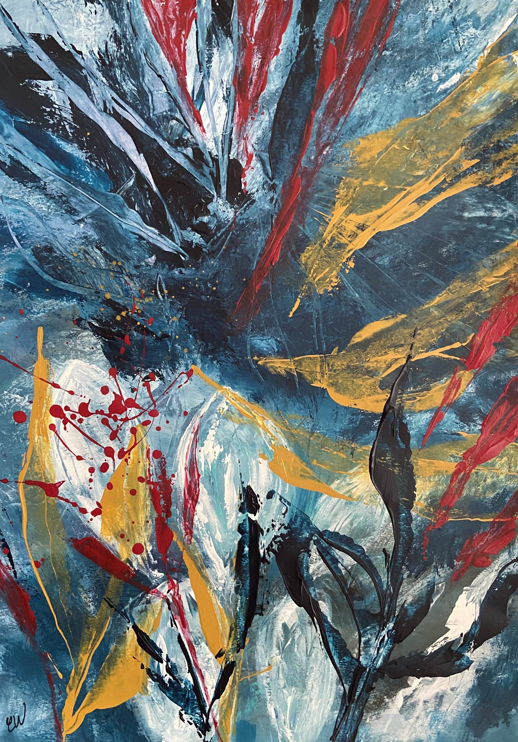 A beautiful abstract botanical painting. 59.4 x 42 cm (A2 size). Acrylic on paper. Frame not included. Requires framing.
