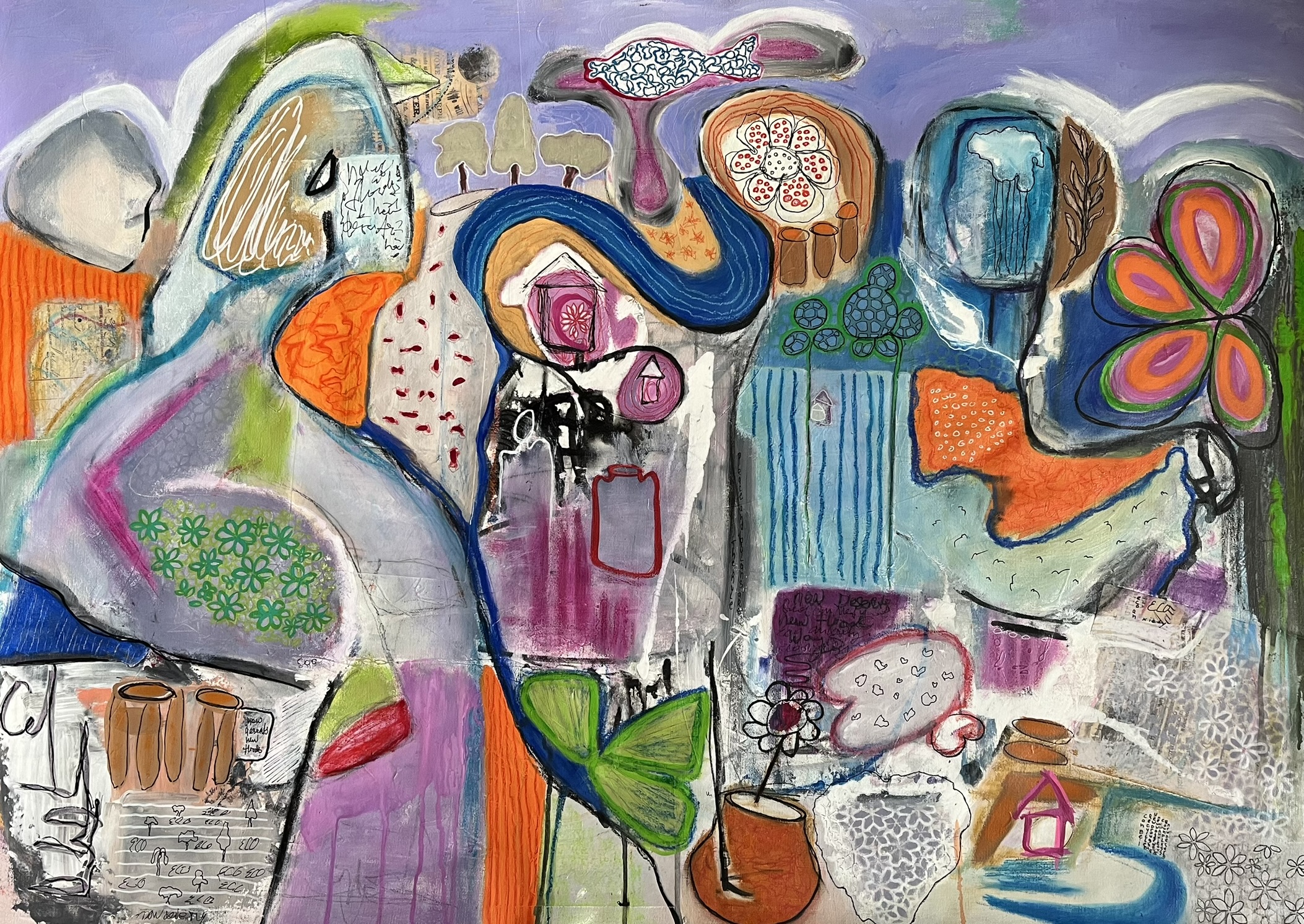 Besides being a lovely colourful flourishing piece for your wall it’s also a very busy, full-of-life artwork, which I hope will make people sit down and wonder what this vibrant piece of art is all about and will become a starting point for conversation and discussions.