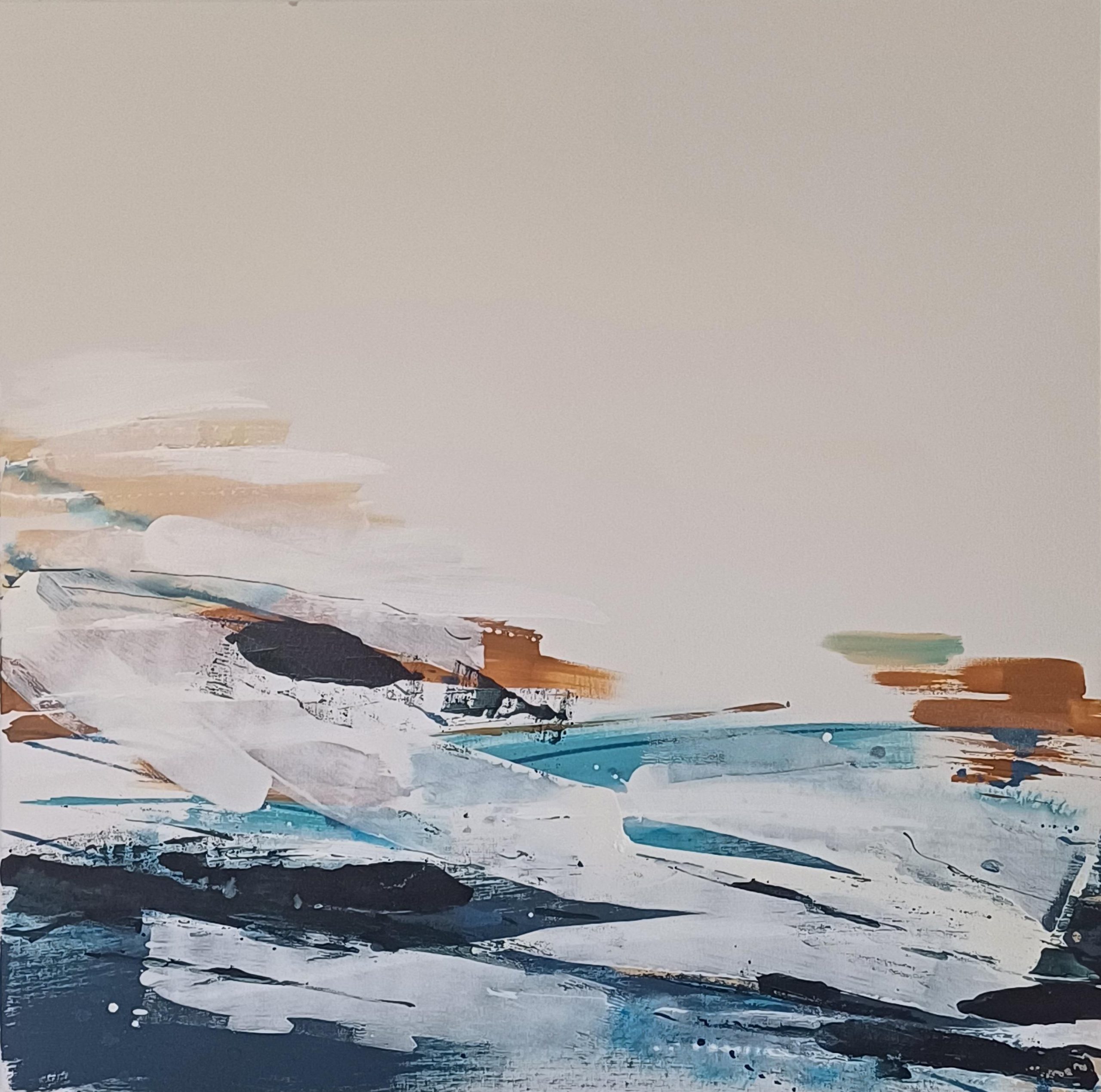 Flow 1 by Wendy Rennie – Original Abstract Artwork inspired from the landscape. The many coastal waterways and scenery provide the inspiration with the intent to capture the ever-changing “ebb n flow”, of the water and natural surrounds, as they change and flow from one moment to the next. A focus on how the landscape transforms into a symphony of colours and the way the light plays between the land and sea. This can come as an individual painting or as a set of two or even four artworks that work harmoniously together, or as complete separate pieces. Each piece is a square canvas on an artist quality stretcher framed the same way and whilst not made to be sold together each work blends together. The work is produced with high quality Acrylic and Ink and charcoal products and sealed.